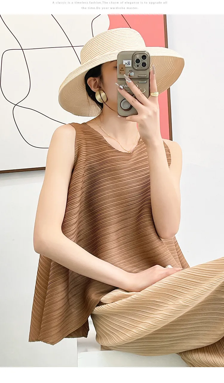 衣都精品- 新款小眾蓬蓬不規則百褶無袖褶皺上衣