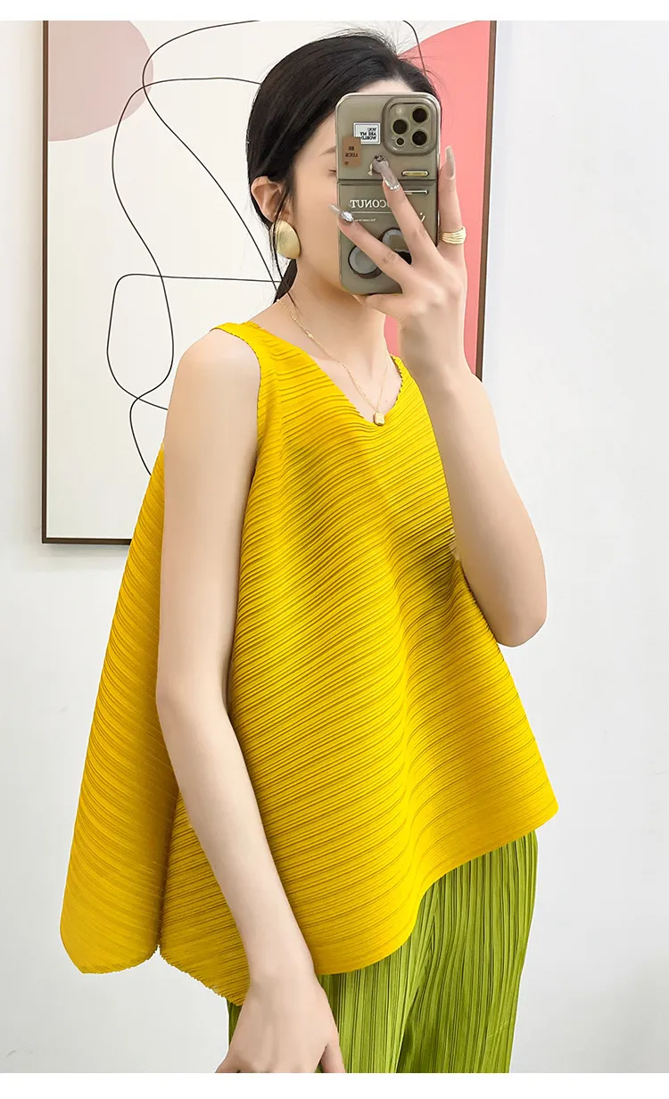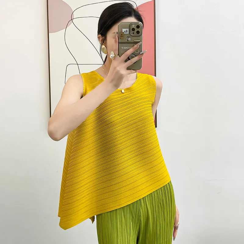 衣都精品- 新款小眾蓬蓬不規則百褶無袖褶皺上衣