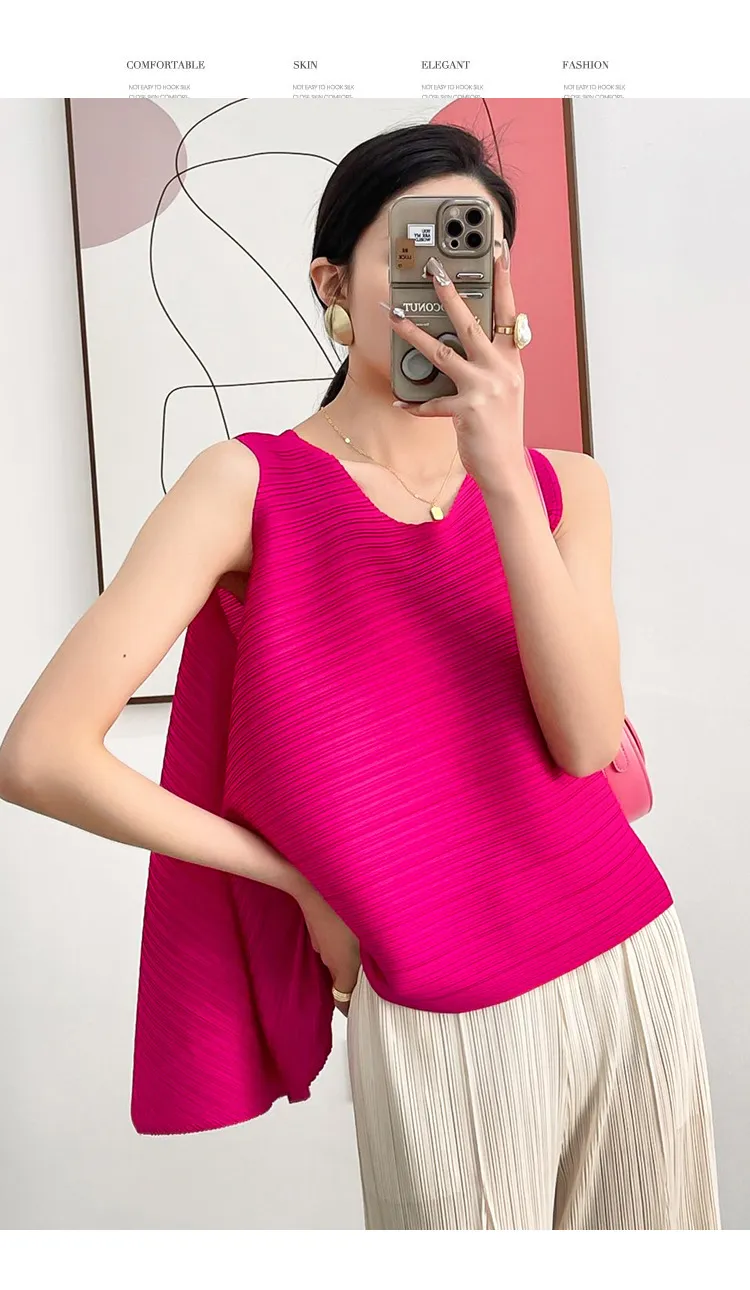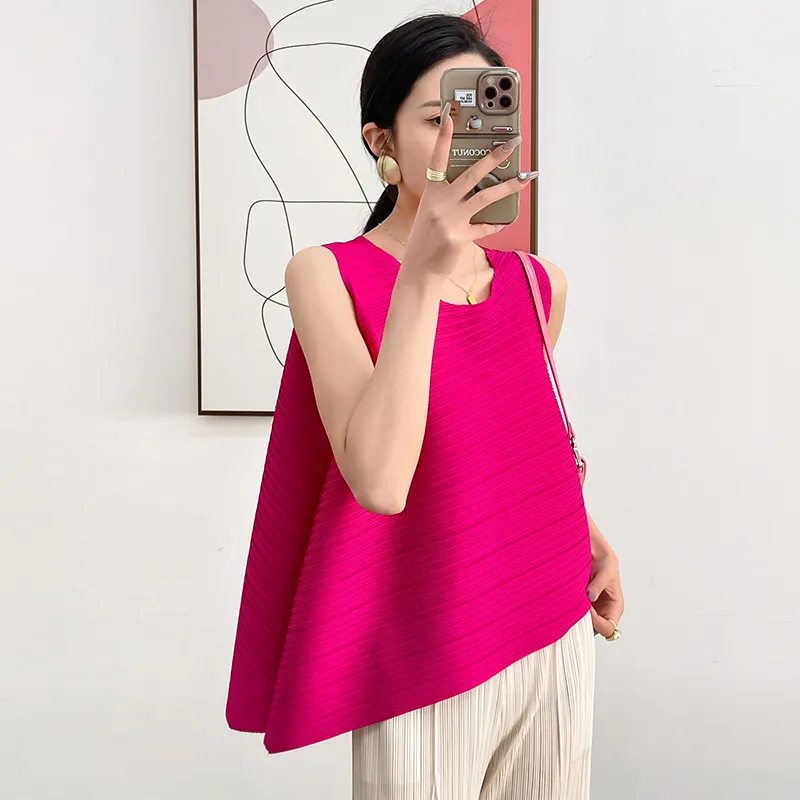 衣都精品- 新款小眾蓬蓬不規則百褶無袖褶皺上衣