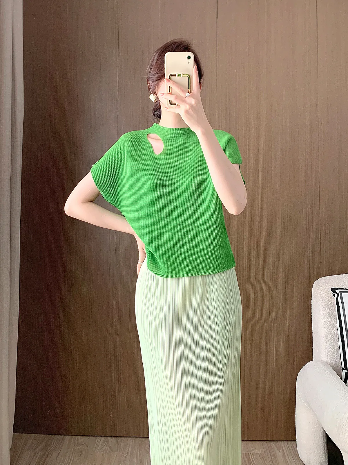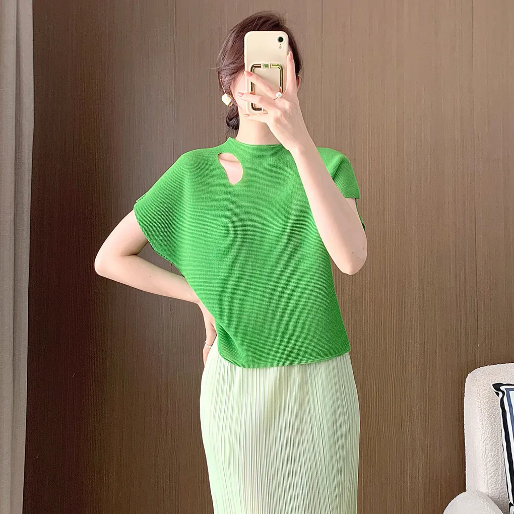 衣都精品- 新款時尚鏤空設計感短袖褶皺上衣