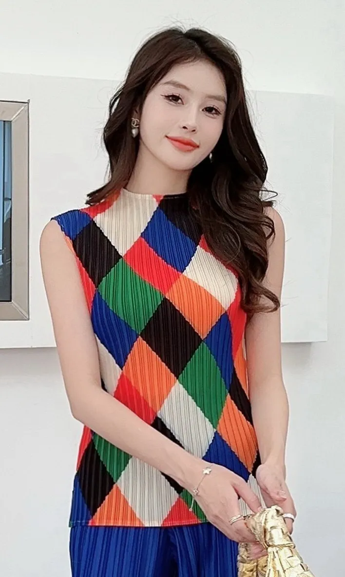 衣都精品- 新款時尚設計感顯瘦無袖背心褶皺上衣