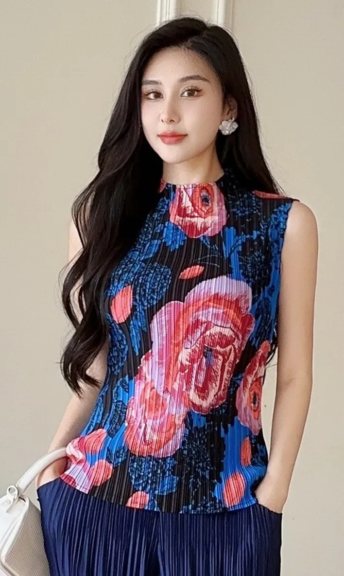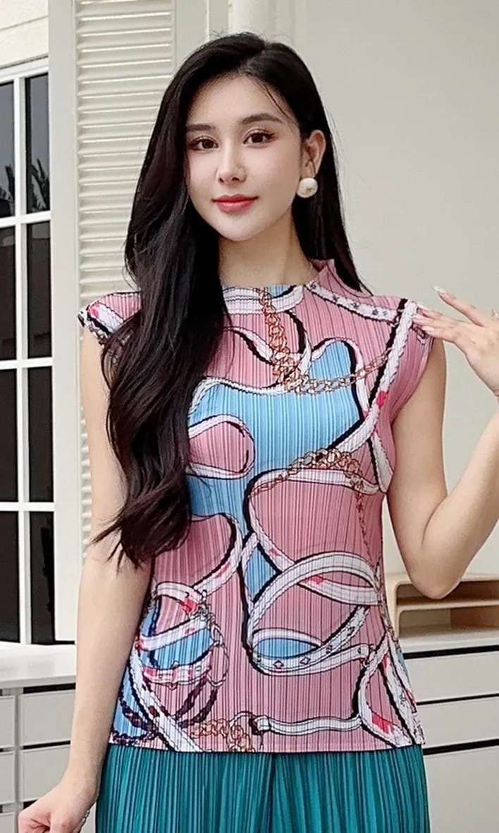 衣都精品- 新款時尚設計感顯瘦無袖背心褶皺上衣