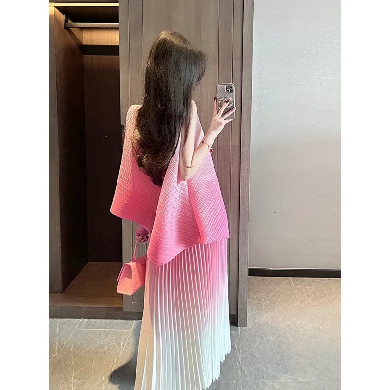 衣都精品- 新款時尚簡約漸進款小香風仙女褶皺套裝
