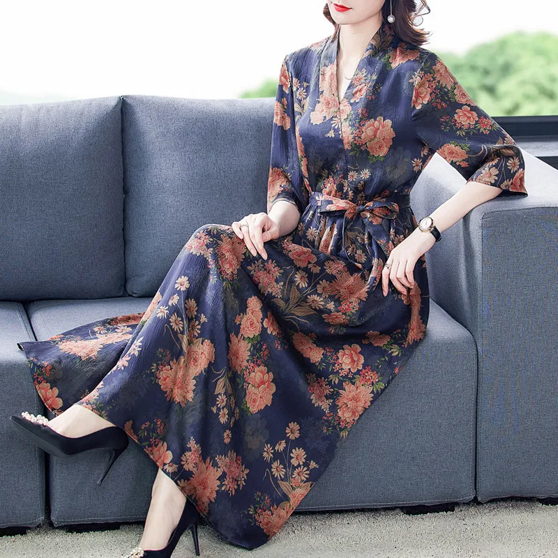 衣都精品- 新款重磅絲質印花收腰顯瘦連衣裙