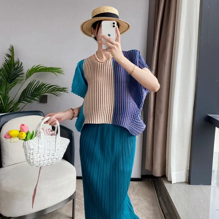 衣都精品- 新款時尚減齡休閒設計感漸變色上衣+半身裙套裝