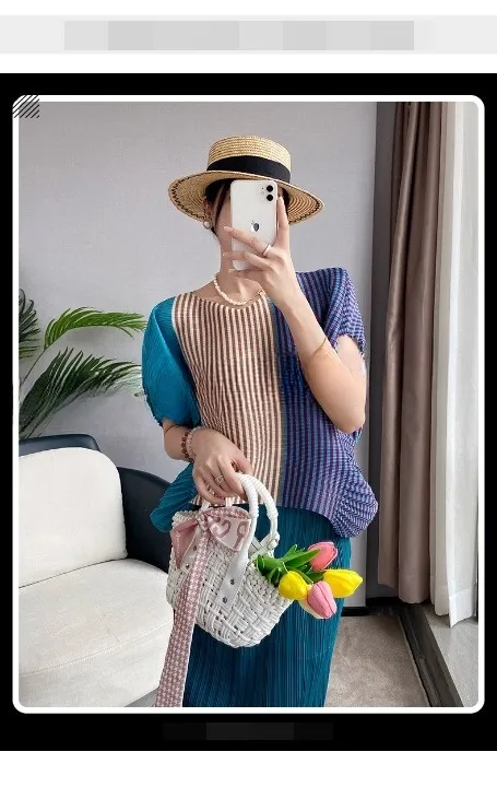 衣都精品- 新款蝙蝠袖印花寬鬆顯瘦遮肚褶皺上衣