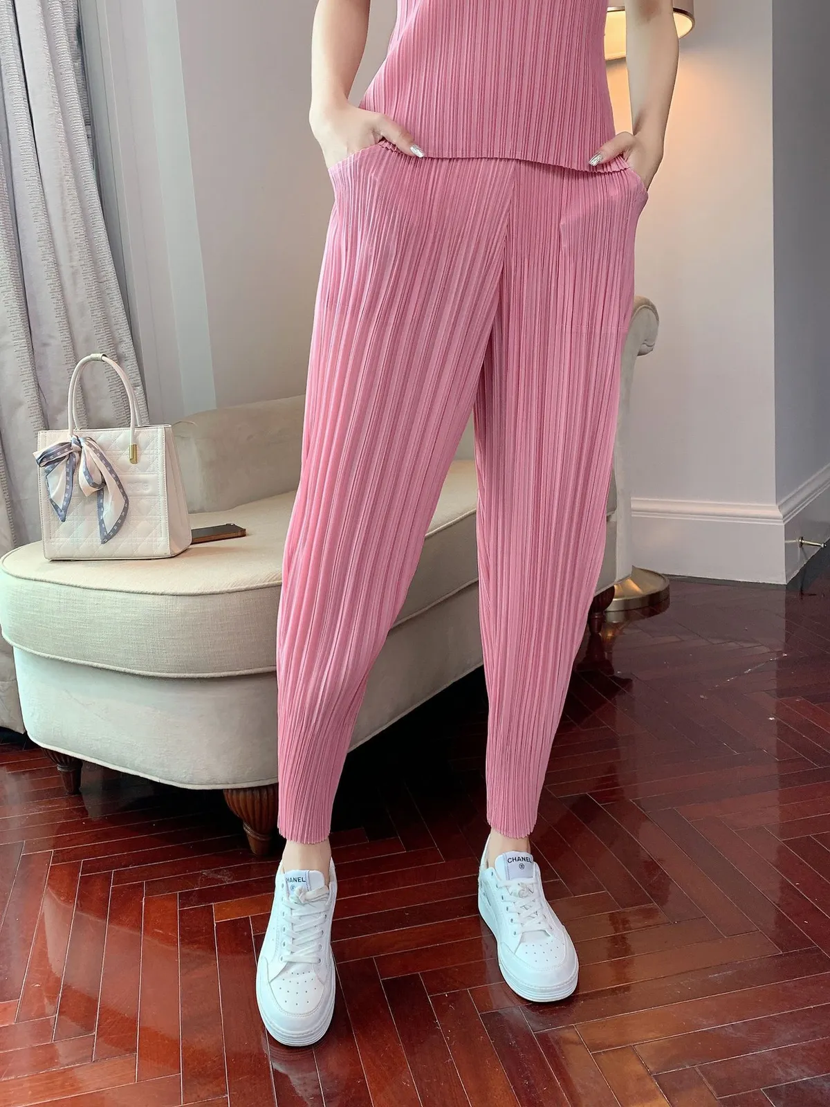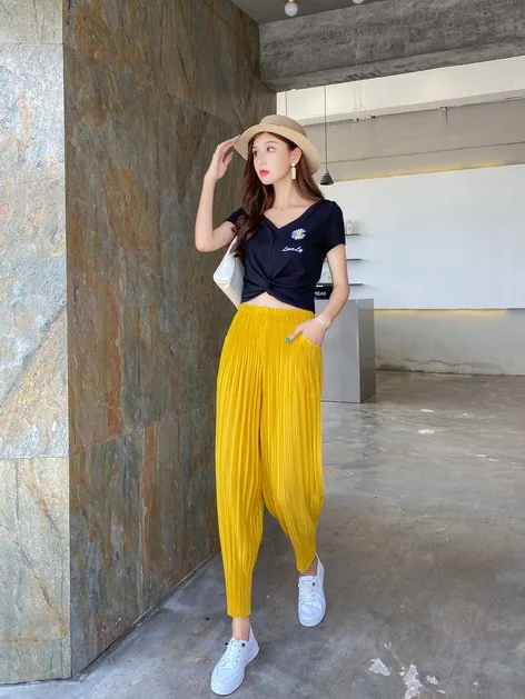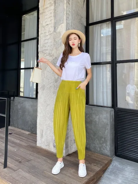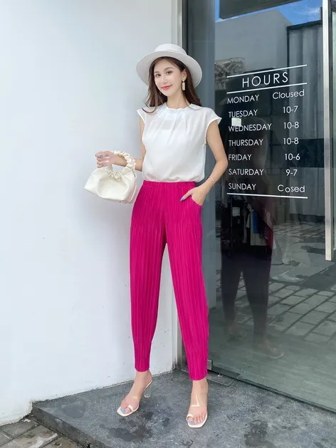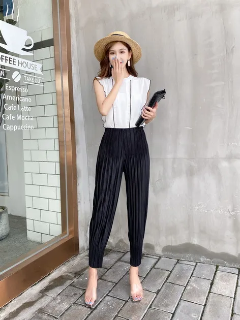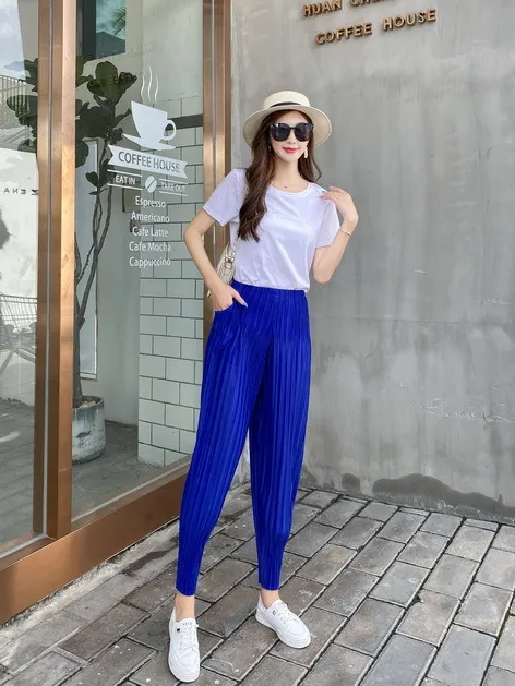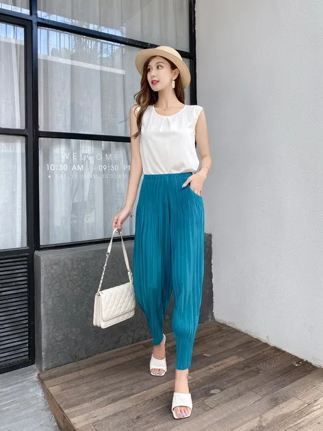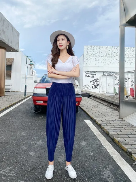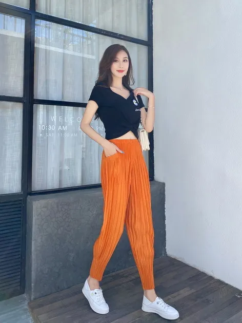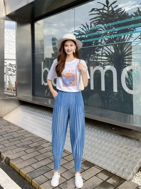 衣都精品- 新款百合束腳透氣高腰顯瘦休閒褶皺小腳褲