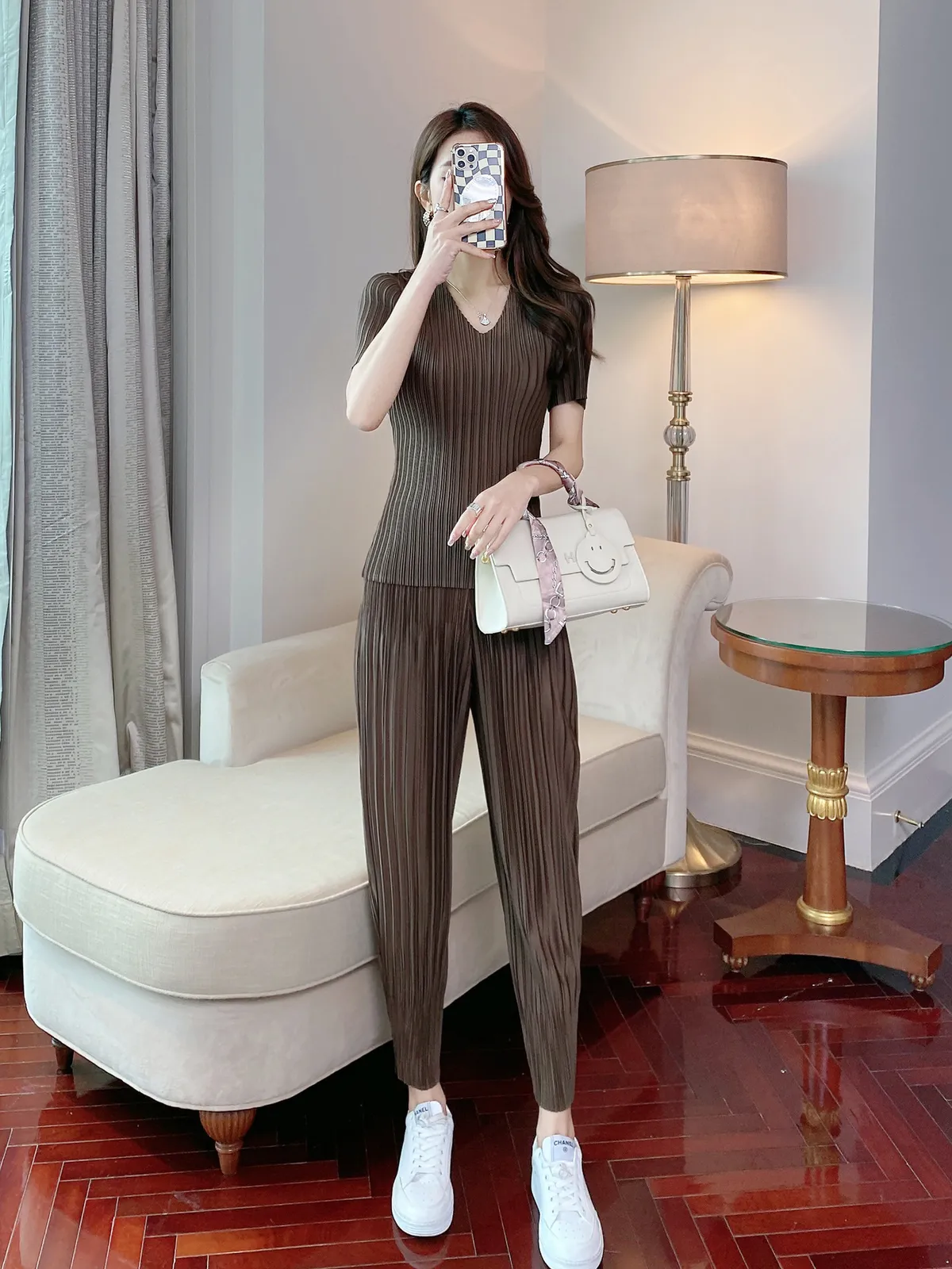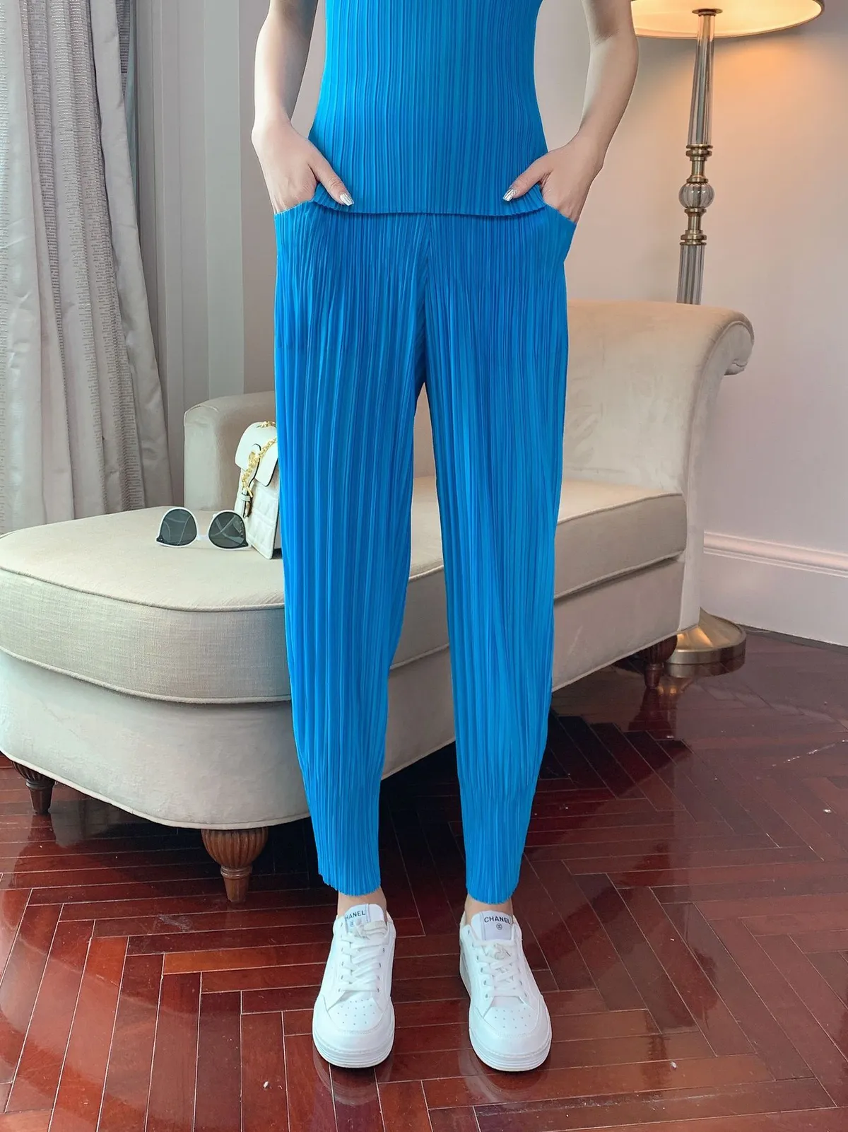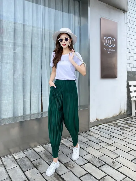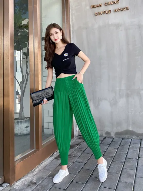 衣都精品- 新款百合束腳透氣高腰顯瘦休閒褶皺小腳褲