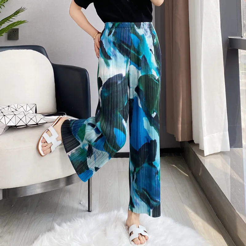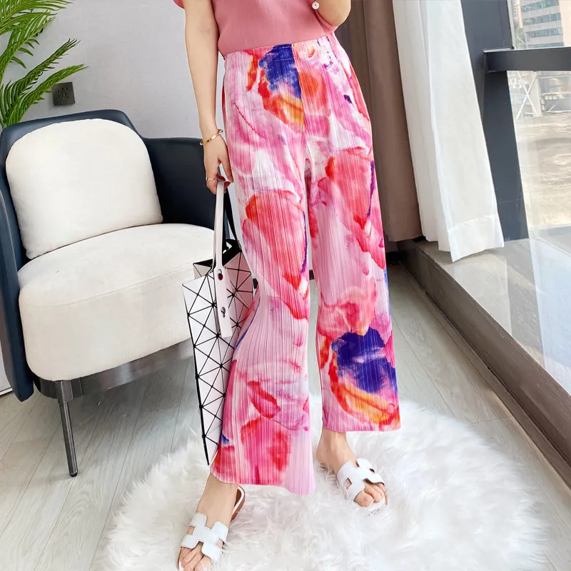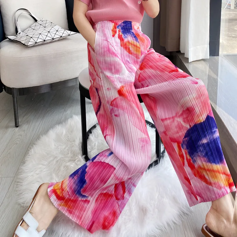 衣都精品- 新款數碼印花寬鬆顯瘦百搭褶皺闊腿褲