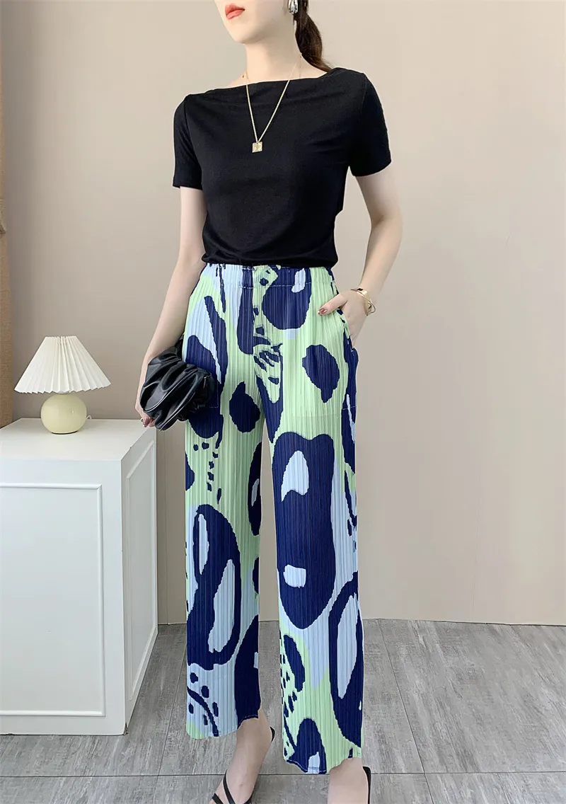 衣都精品- 新款數碼印花寬鬆顯瘦百搭褶皺闊腿褲