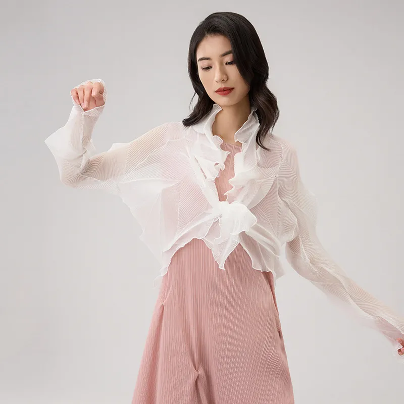 衣都精品- 新款時尚百搭防曬開衫長袖褶皺外套