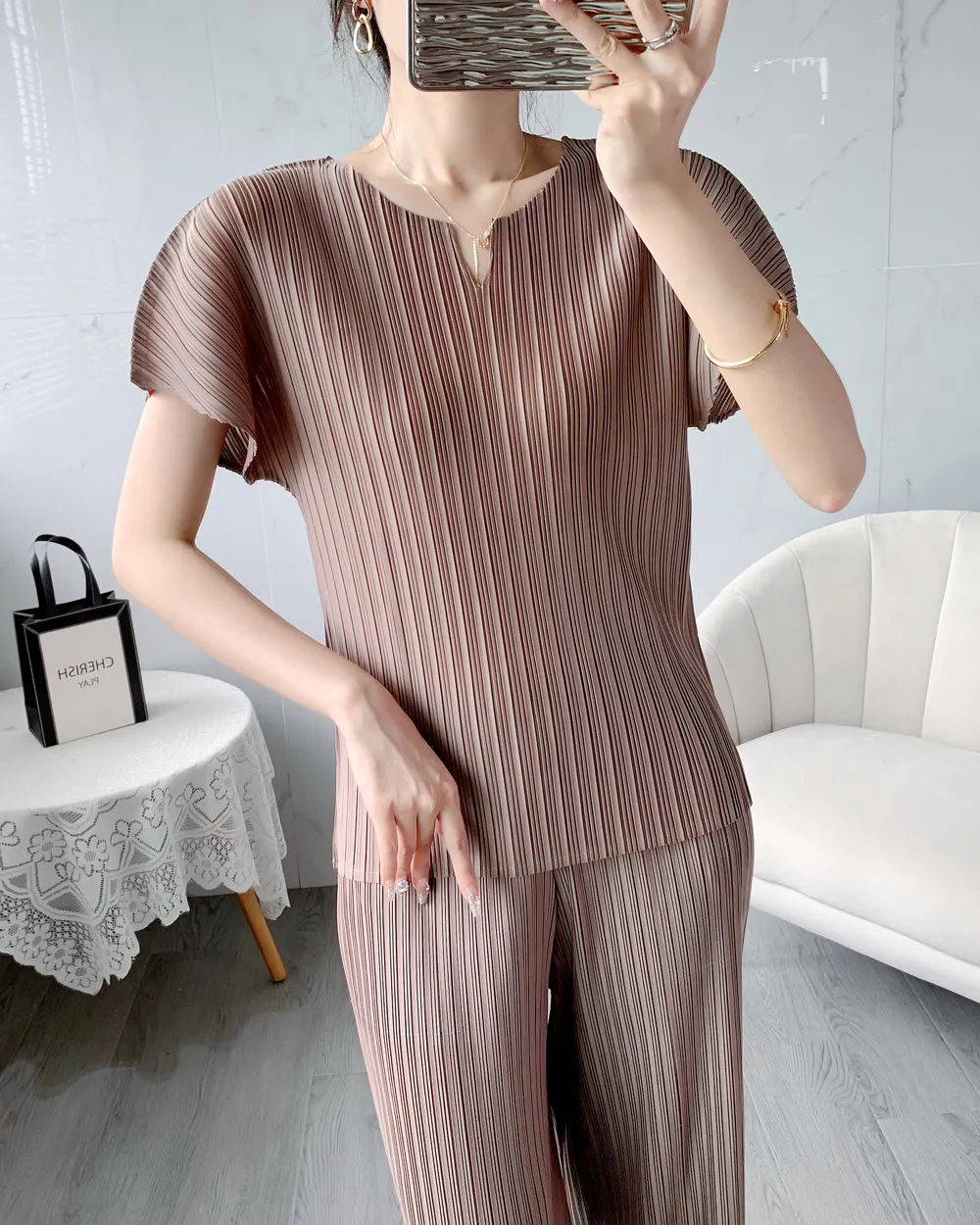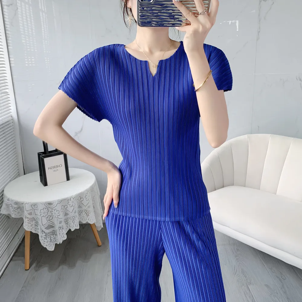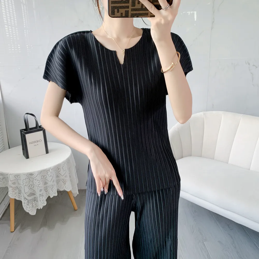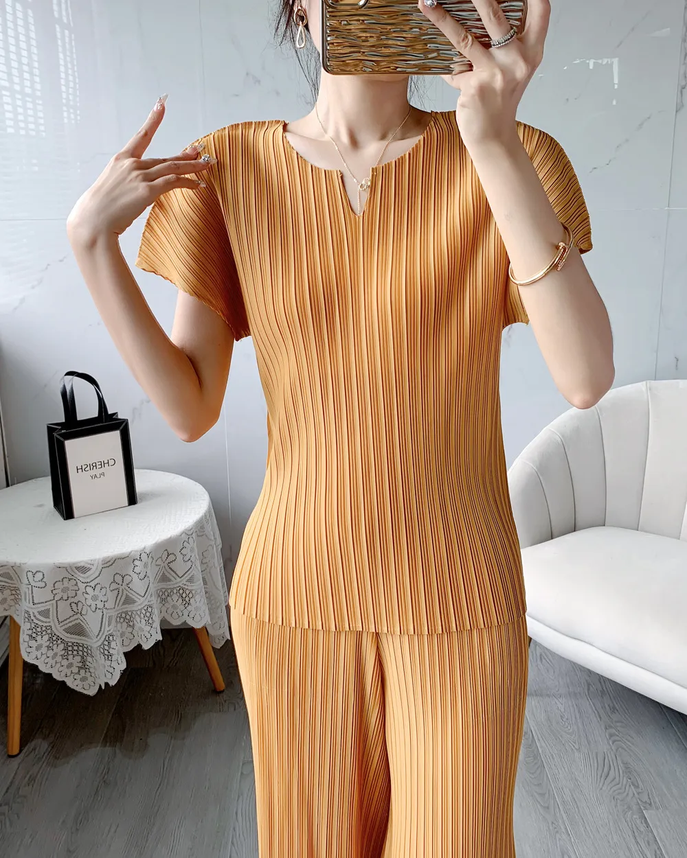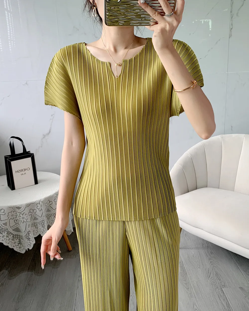 衣都精品- 新款時尚休閒修身氣質短袖褶皺上衣