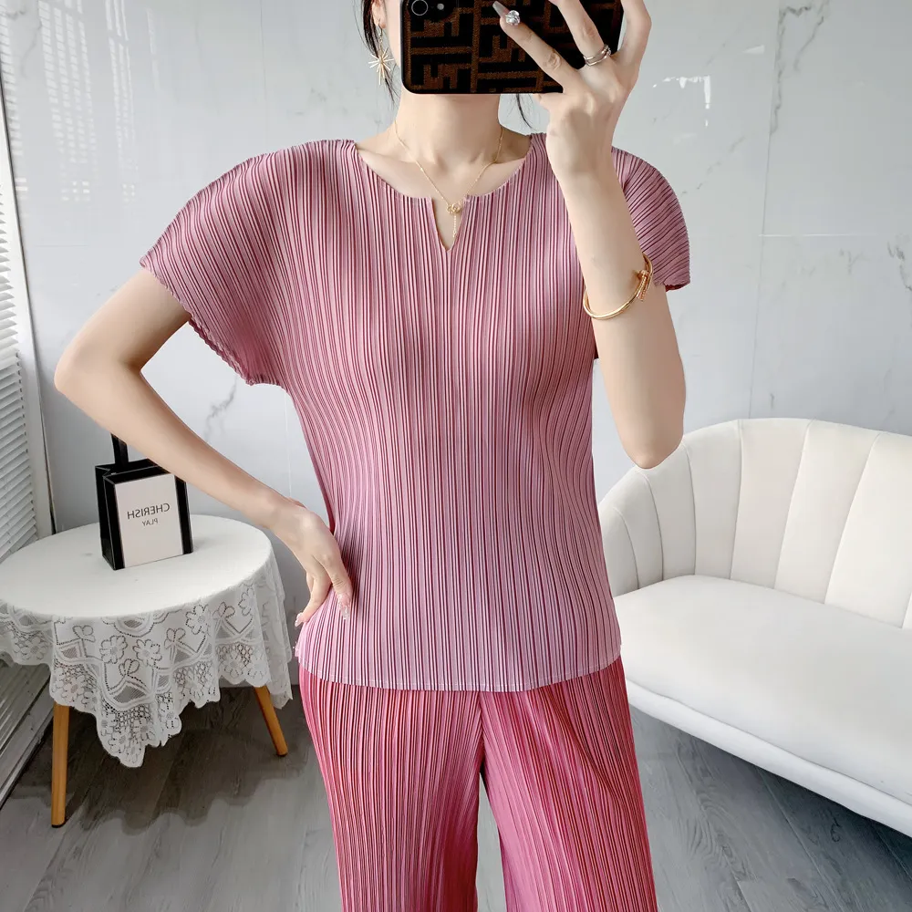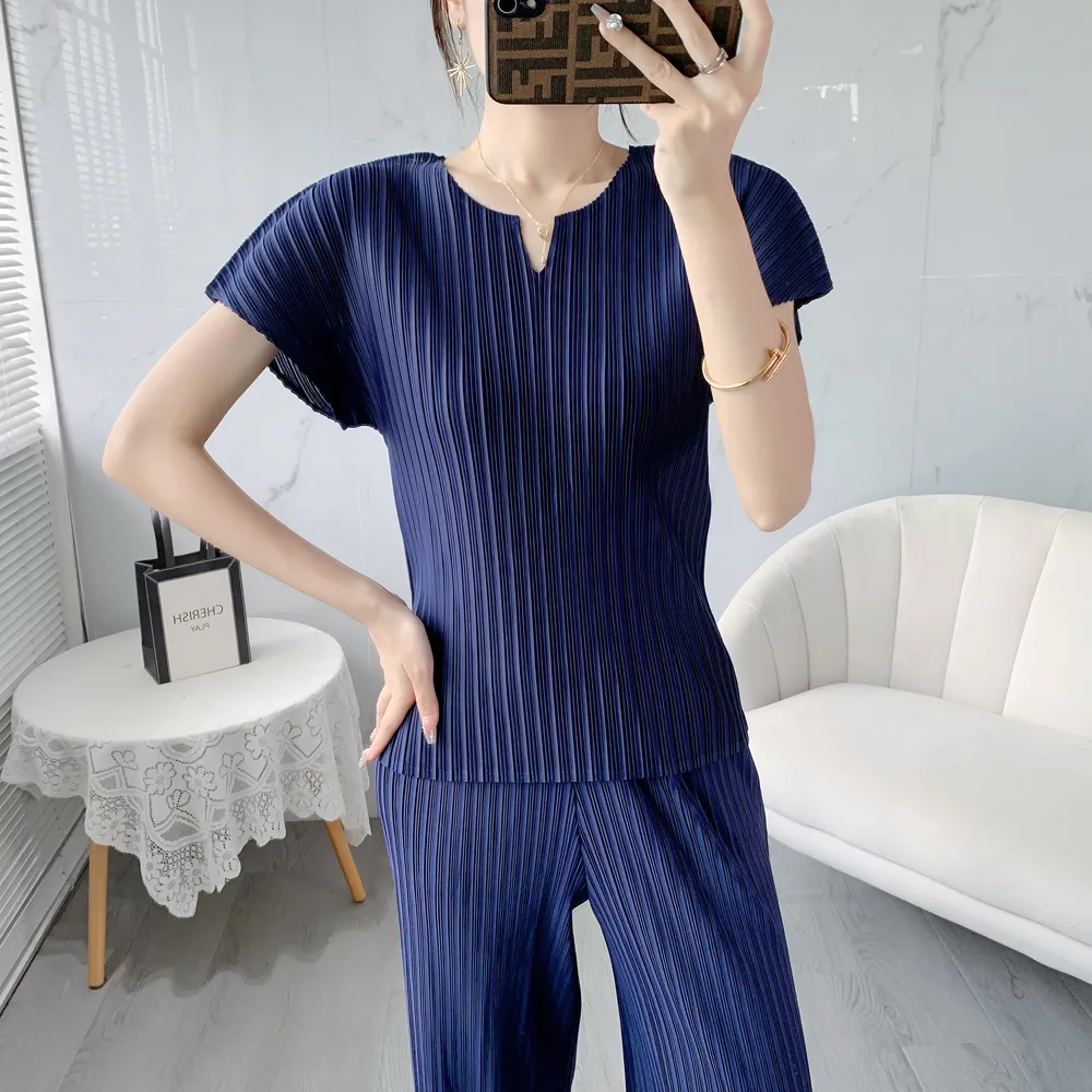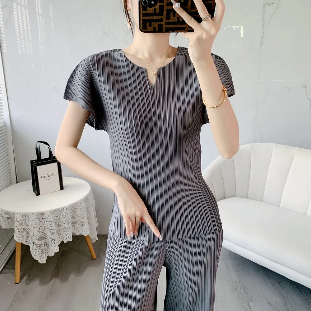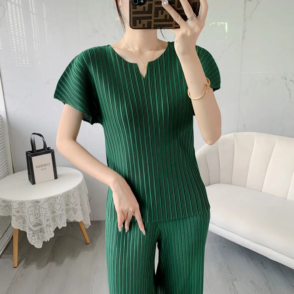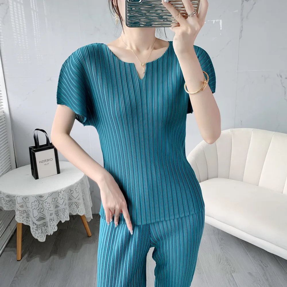 衣都精品- 新款時尚休閒修身氣質短袖褶皺上衣