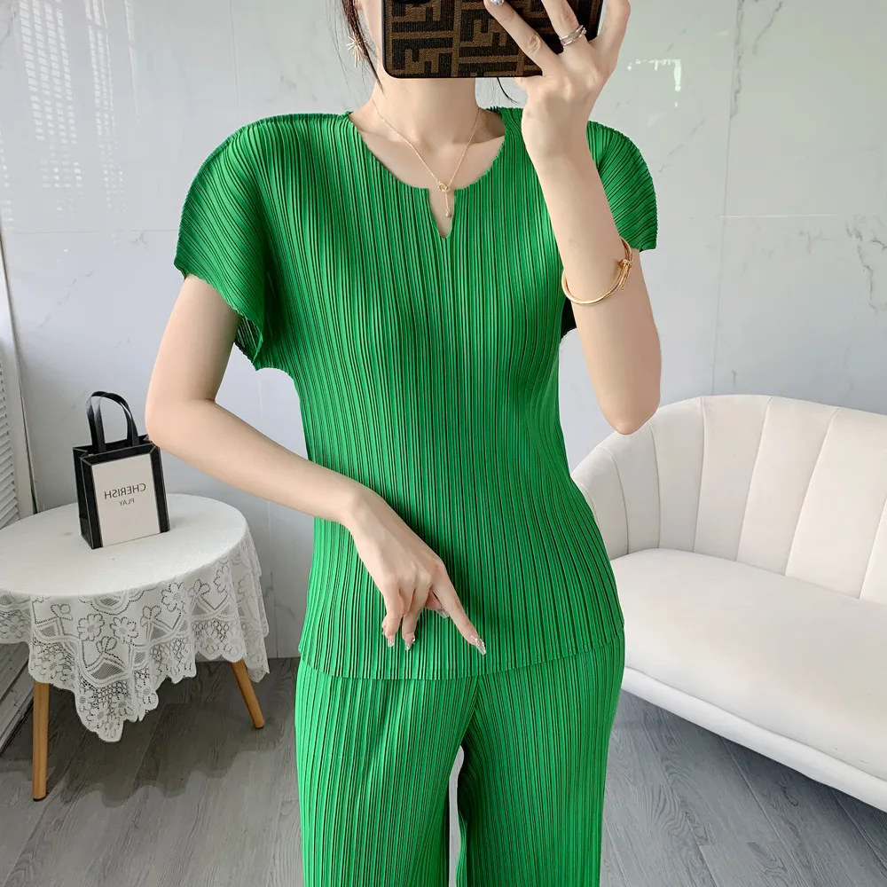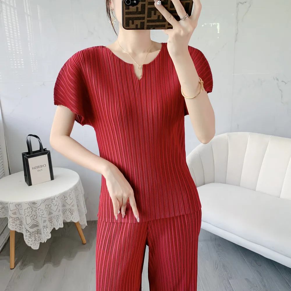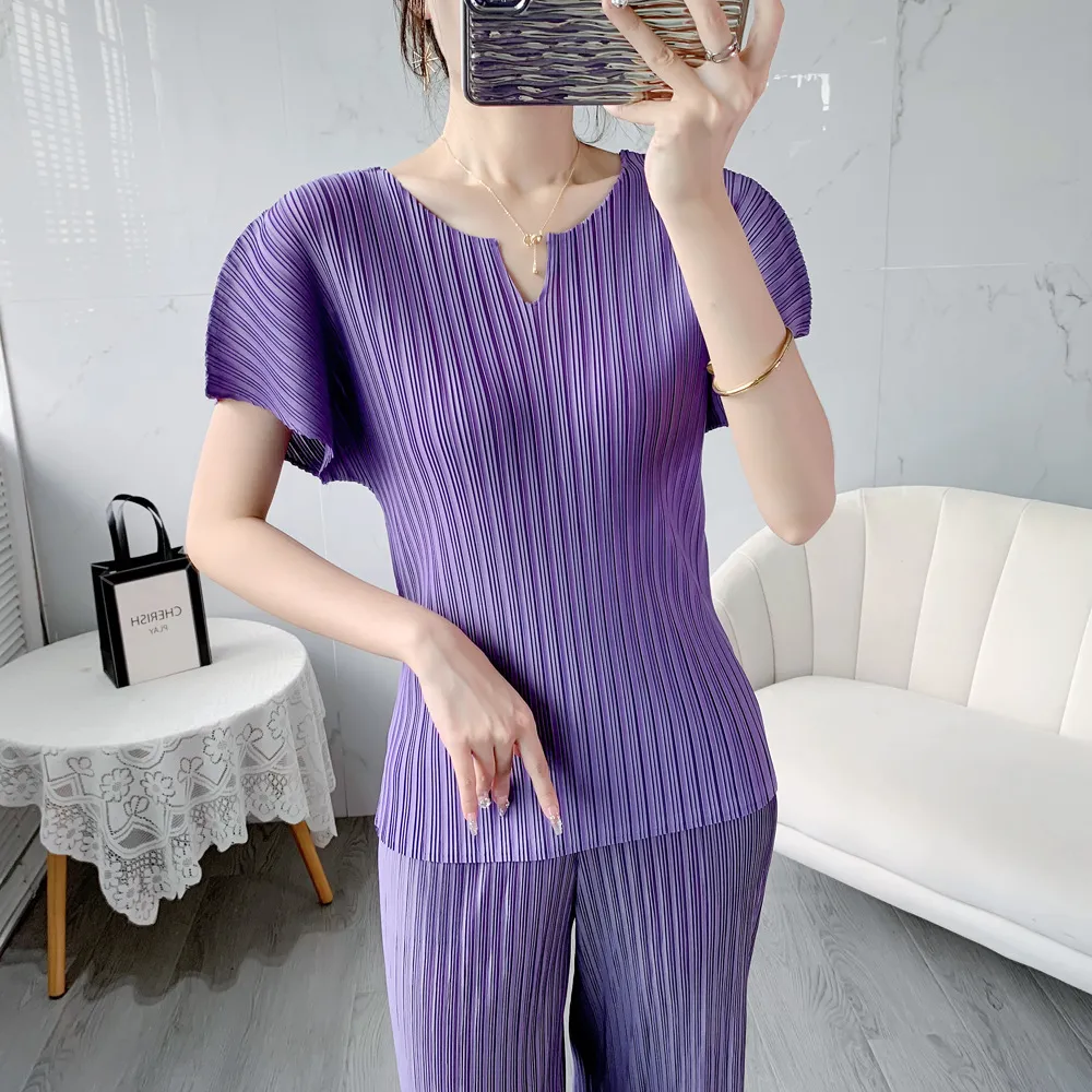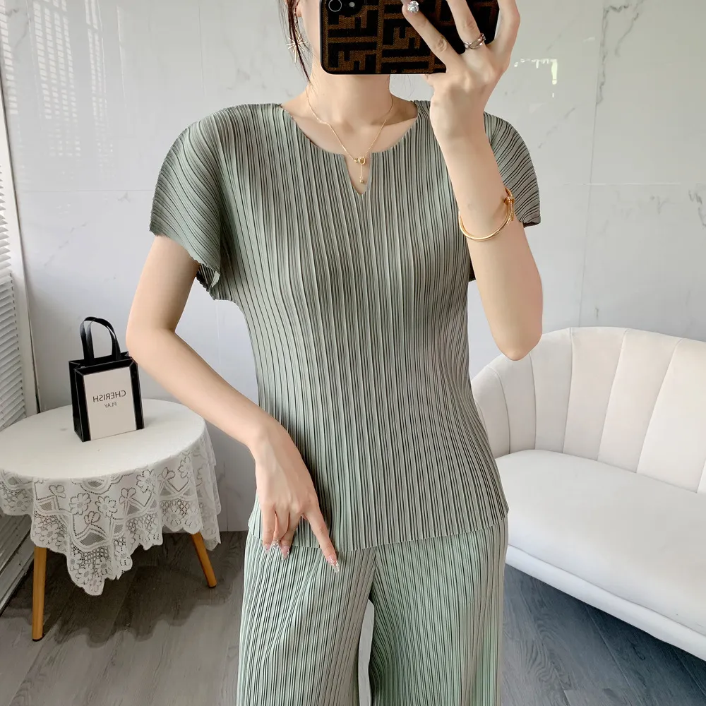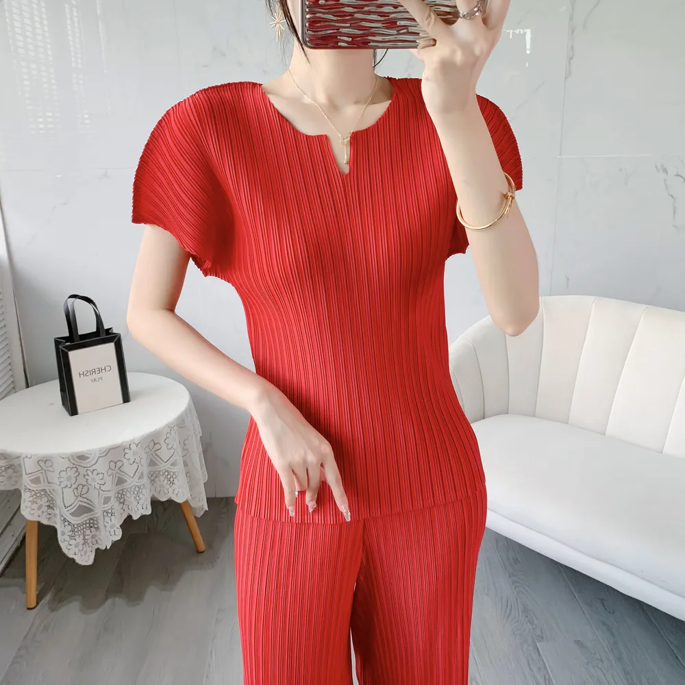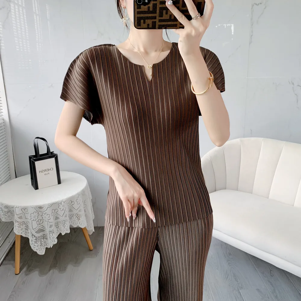 衣都精品- 新款時尚休閒修身氣質短袖褶皺上衣
