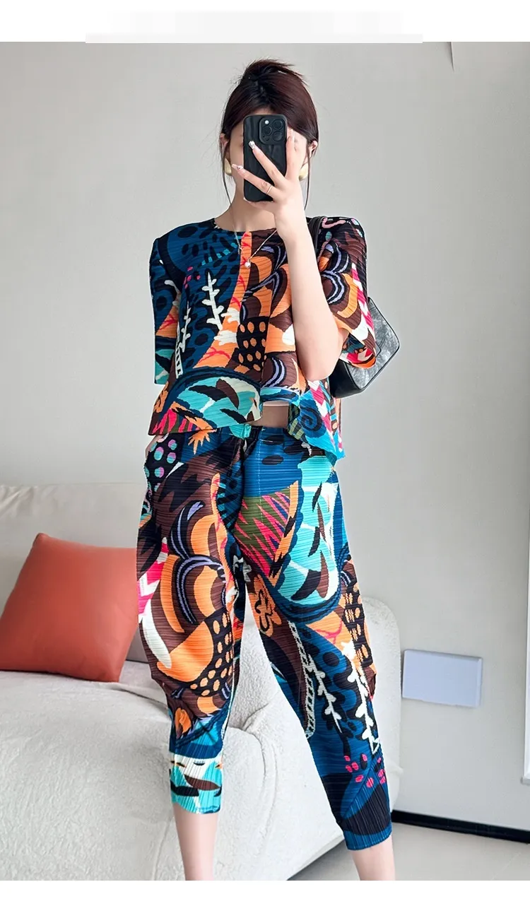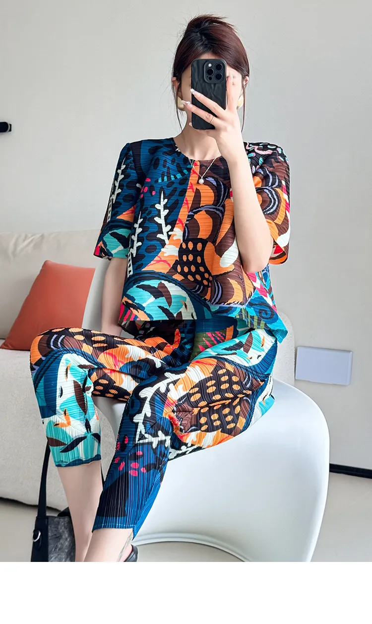 衣都精品- 新款時尚洋氣顯瘦褶皺印花上衣