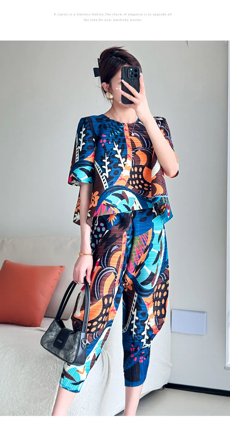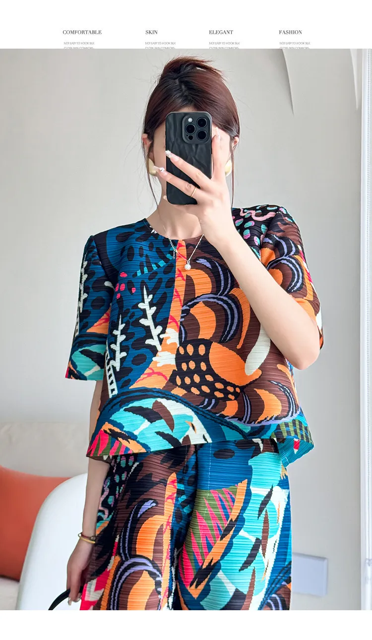 衣都精品- 新款時尚洋氣顯瘦褶皺印花上衣