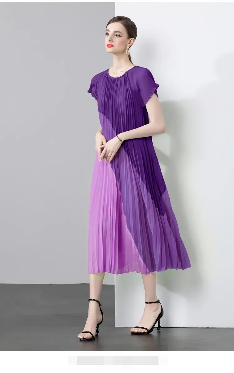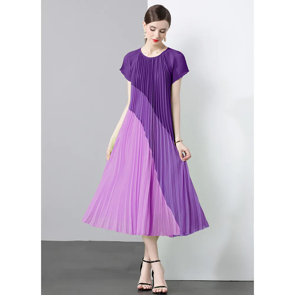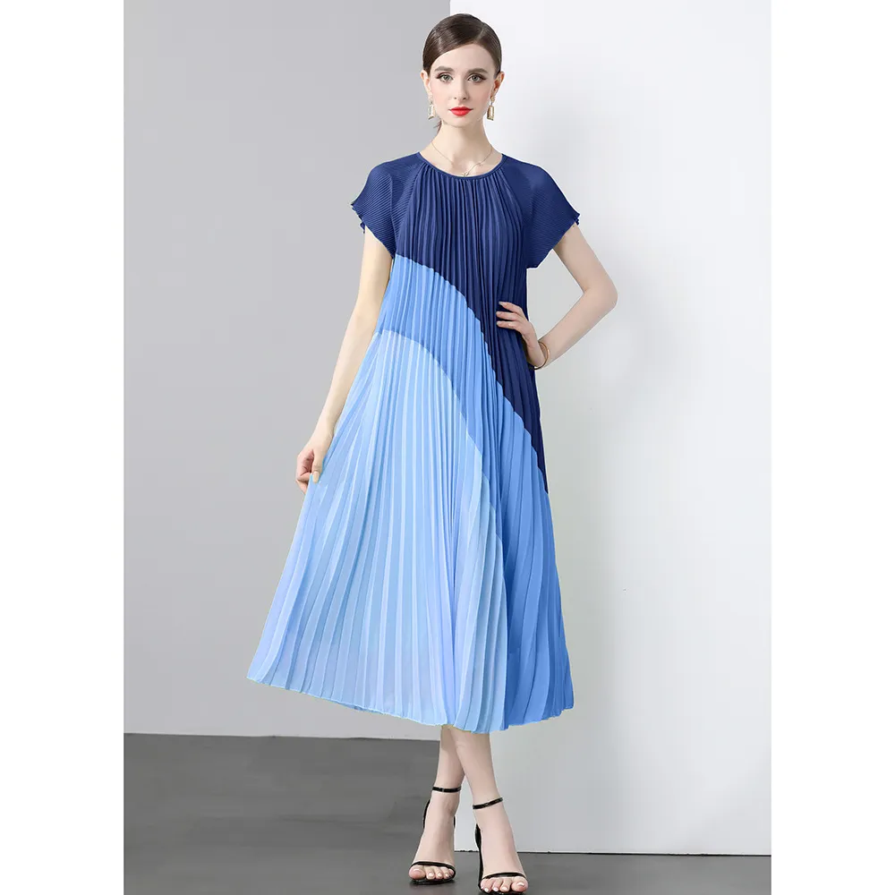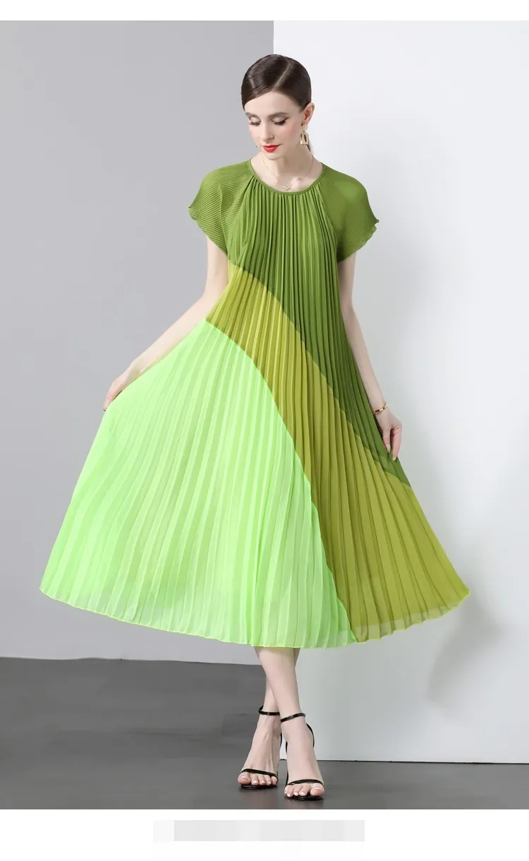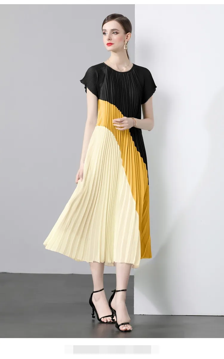 衣都精品- 新款氣質時尚雪紡拼接皺褶連衣裙