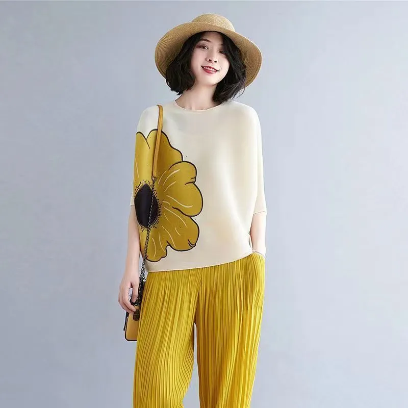 衣都精品- 新款時尚洋氣顯瘦大碼褶皺印花上衣