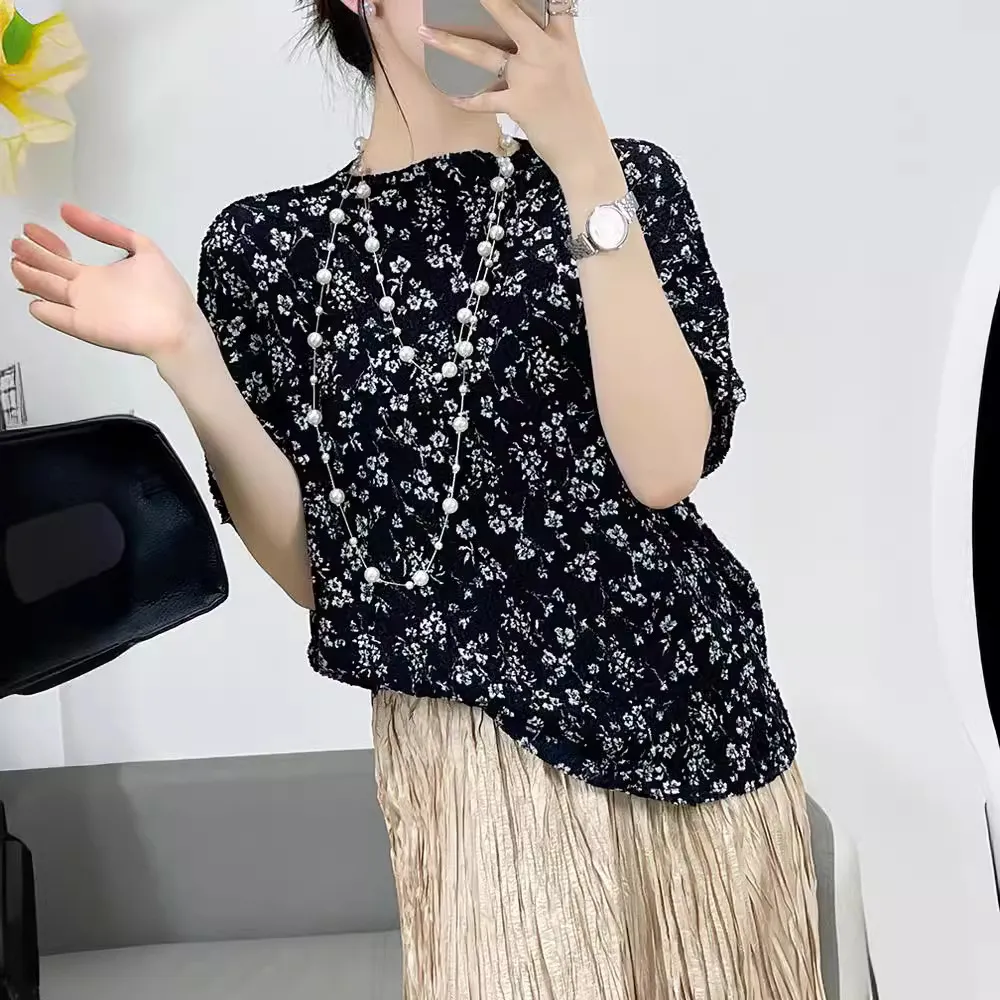 衣都精品- 新款時尚洋氣顯瘦褶皺印花上衣