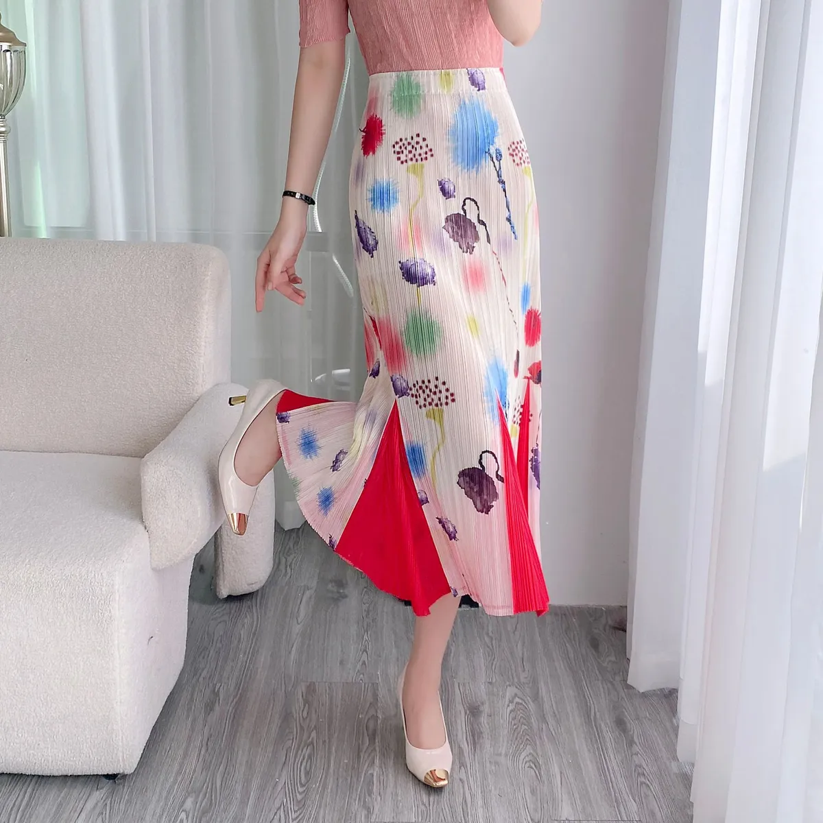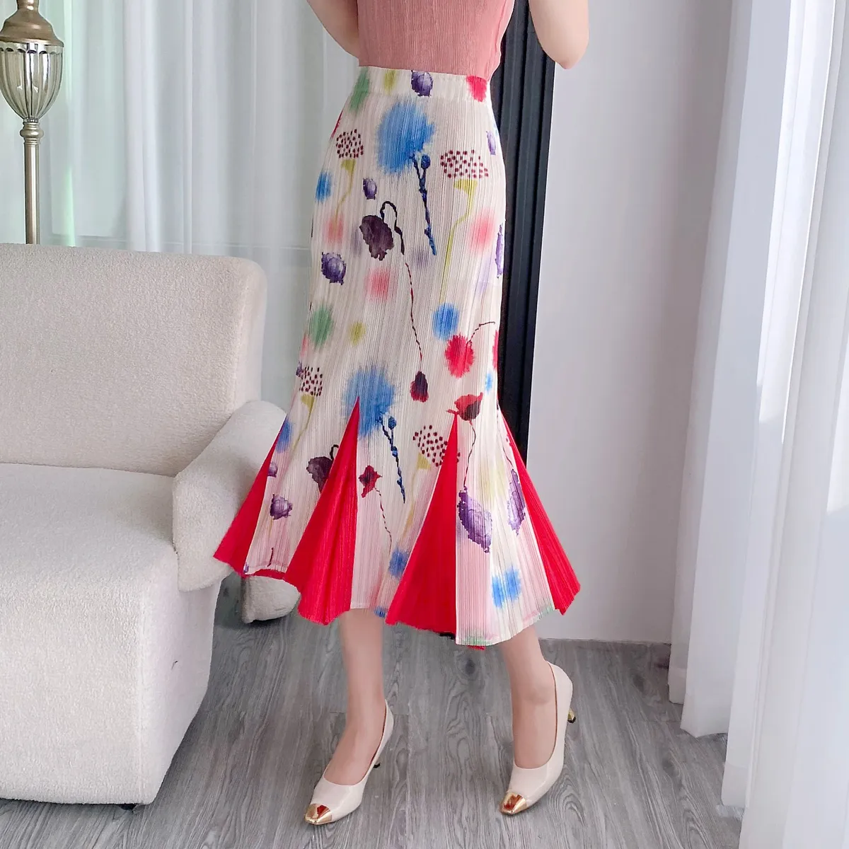 衣都精品- 新款復古印花高腰百搭休閒氣質褶皺半身裙