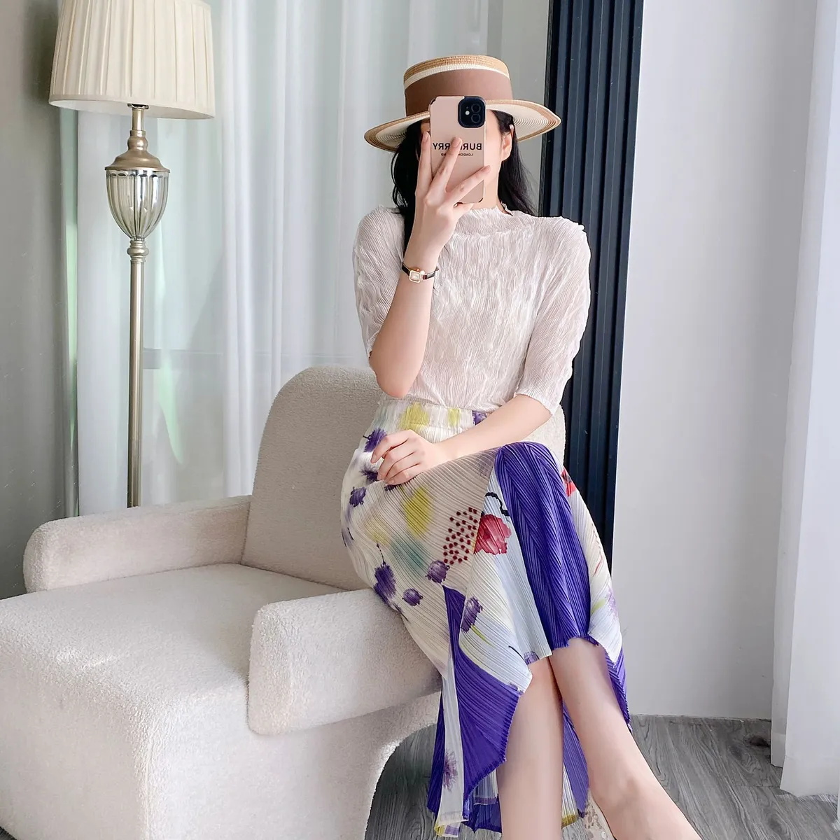 衣都精品- 新款時尚高腰百搭休閒印花褶皺半身裙