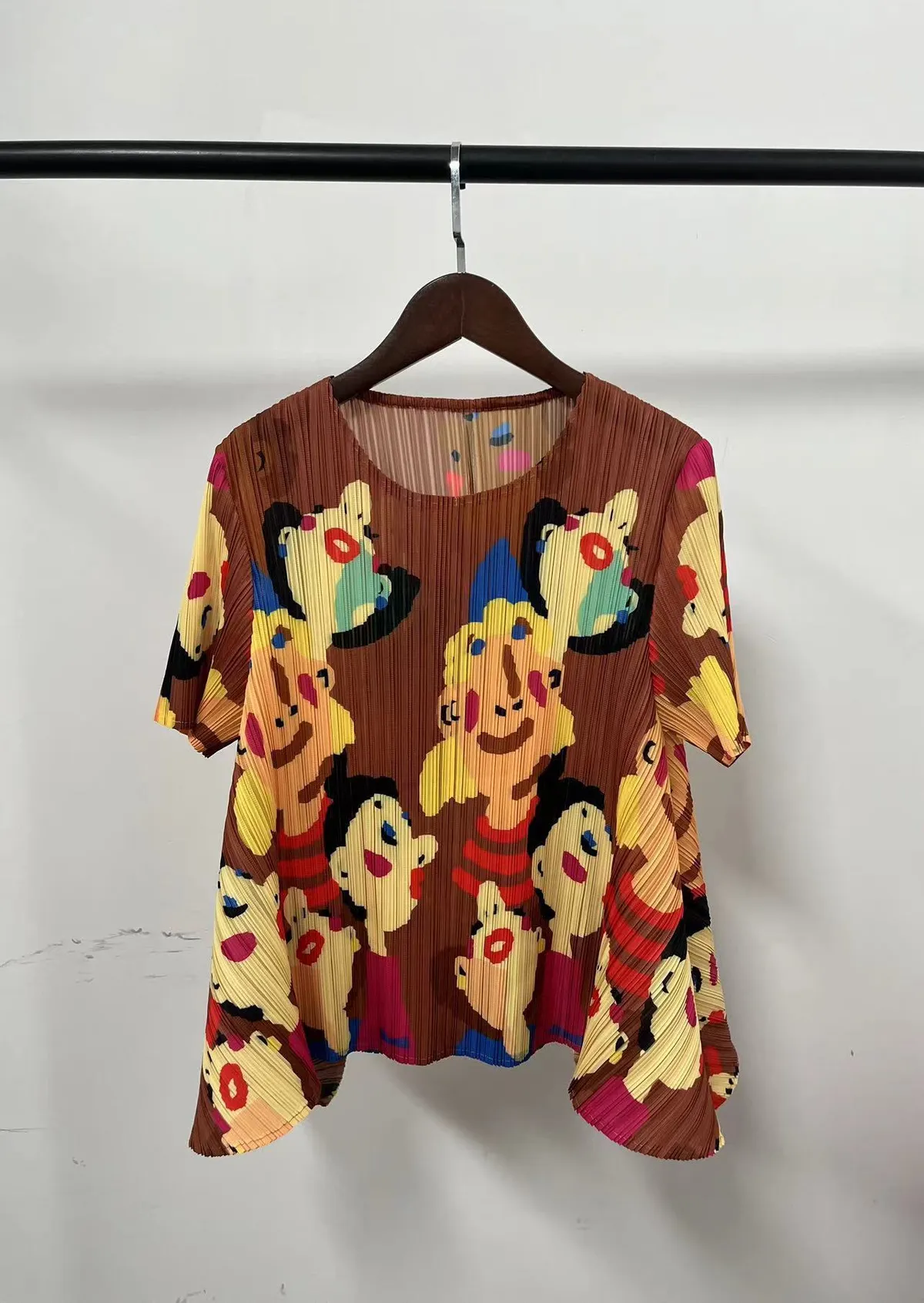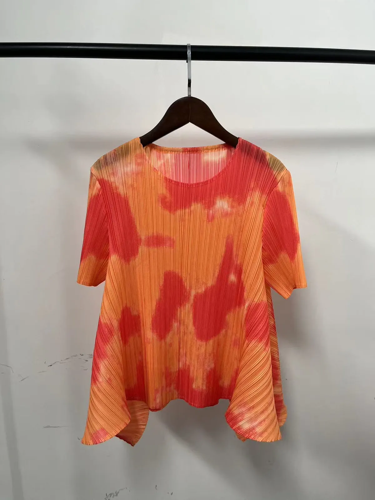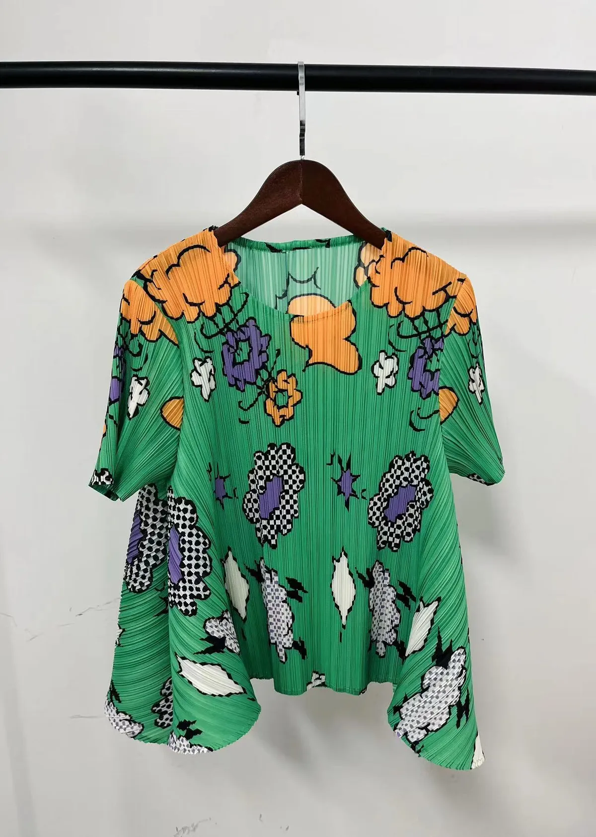 衣都精品- 新款時尚優雅印花大下擺褶皺上衣