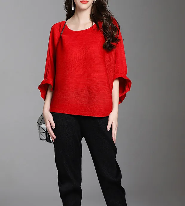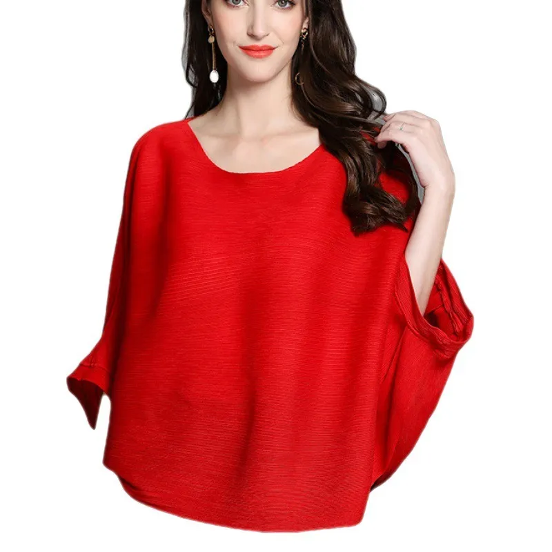 衣都精品- 新款寬鬆純色時尚氣質蝙蝠袖褶皺上衣