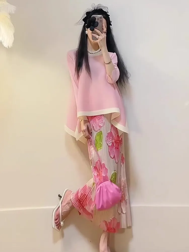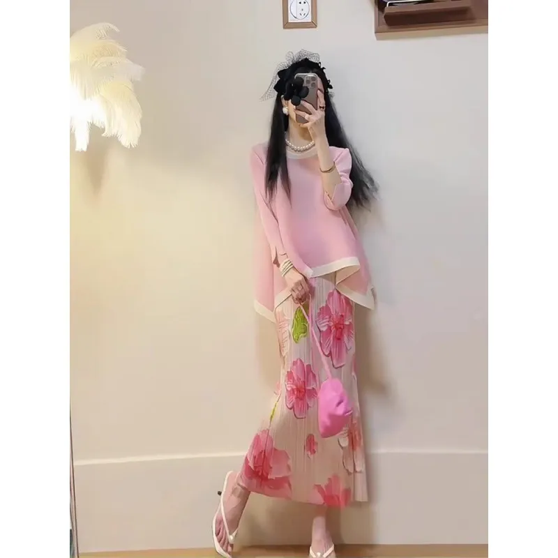 衣都精品- 新款時尚高腰百搭休閒印花褶皺半身裙