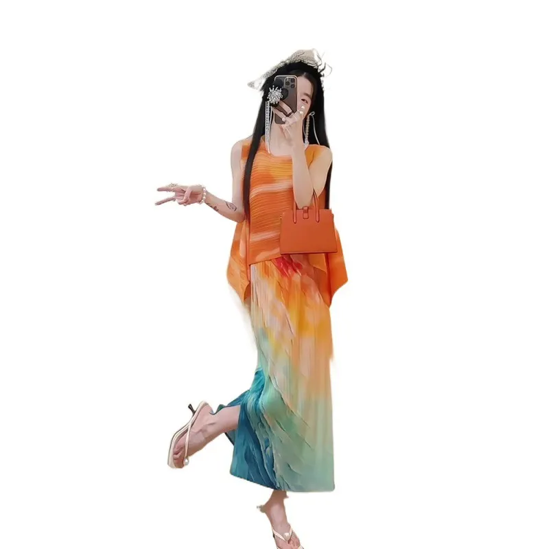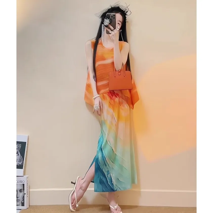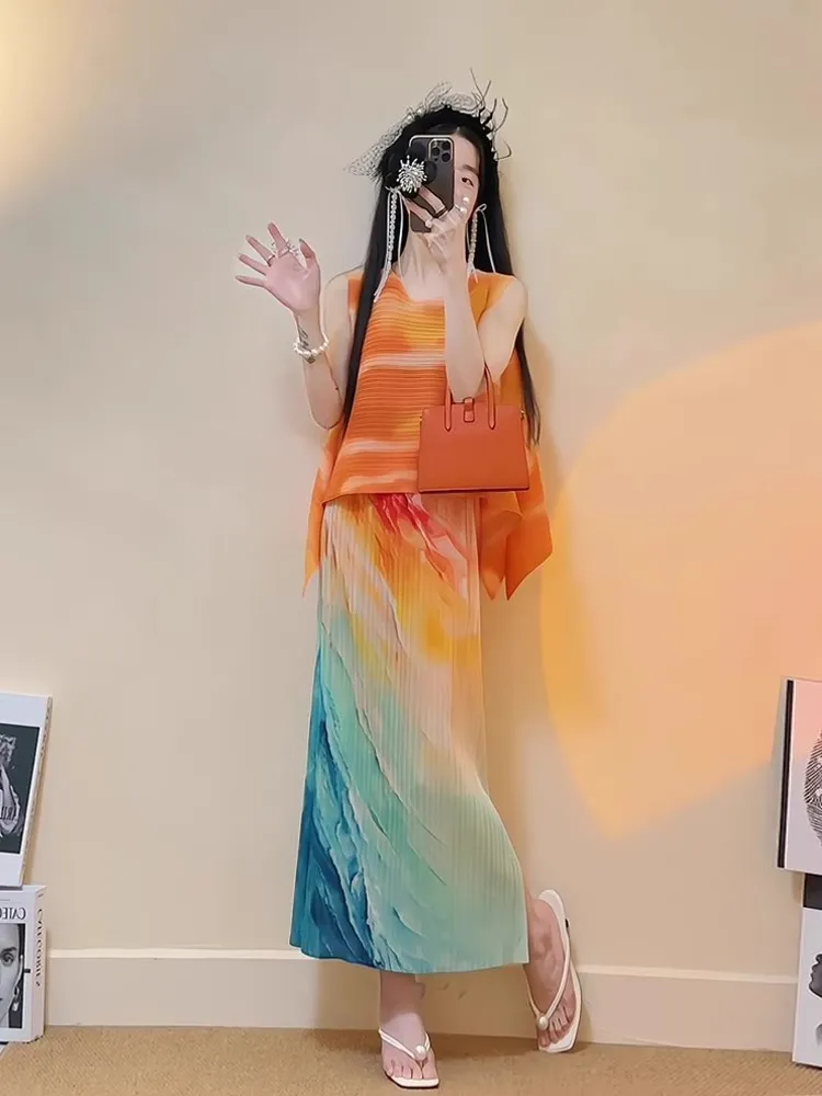 衣都精品- 新款時尚高腰百搭休閒印花褶皺半身裙
