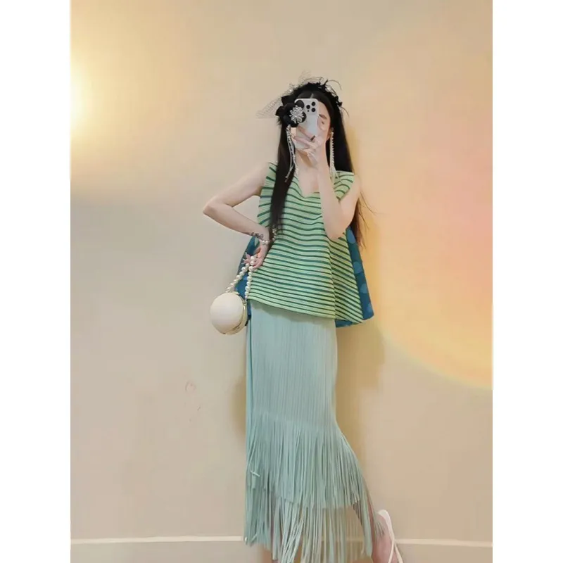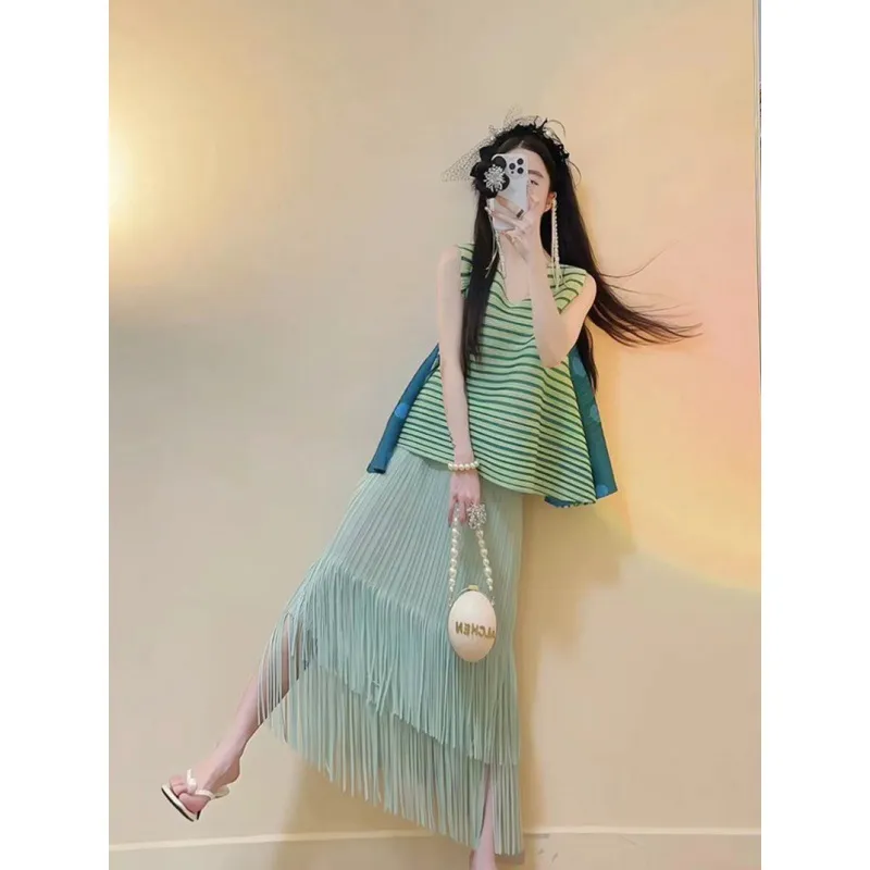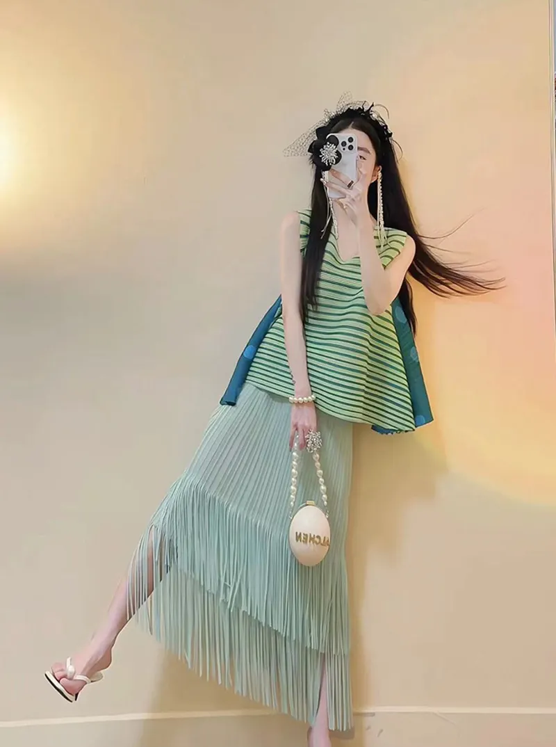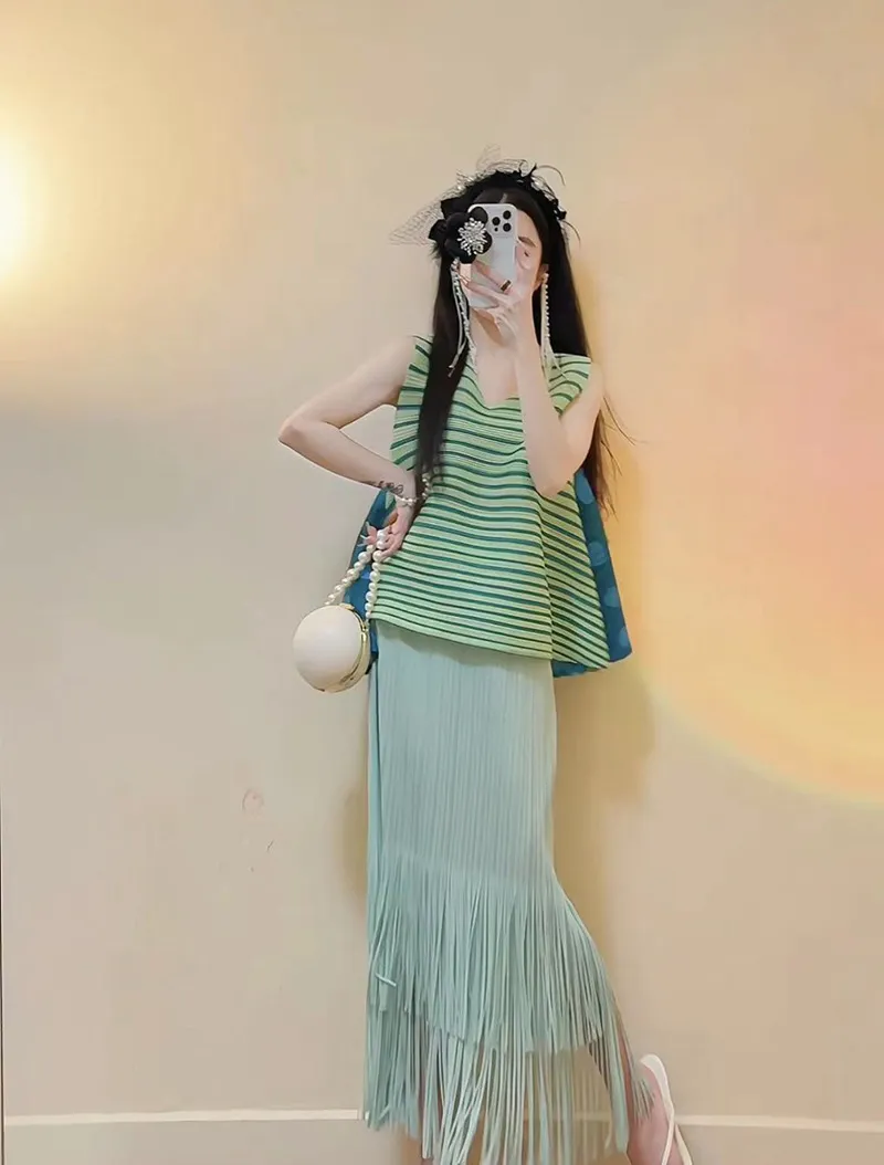 衣都精品- 新款時尚高腰百搭休閒印花褶皺半身裙