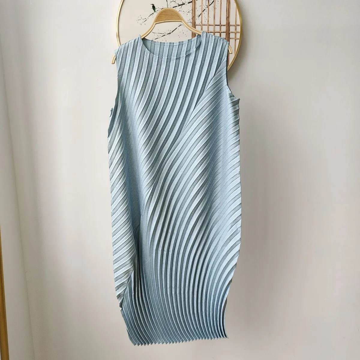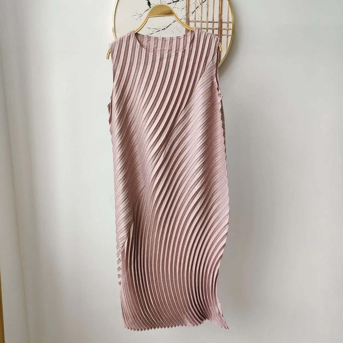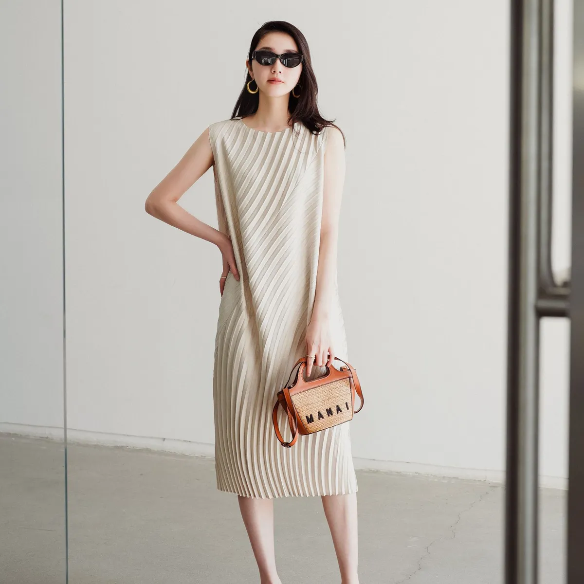 衣都精品- 新款時尚無袖大擺減齡大碼純色褶皺連衣裙