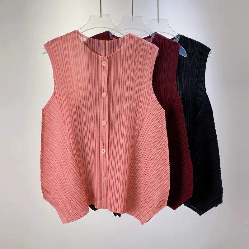 衣都精品- 新款時尚氣質不規則顯瘦圓領褶皺上衣