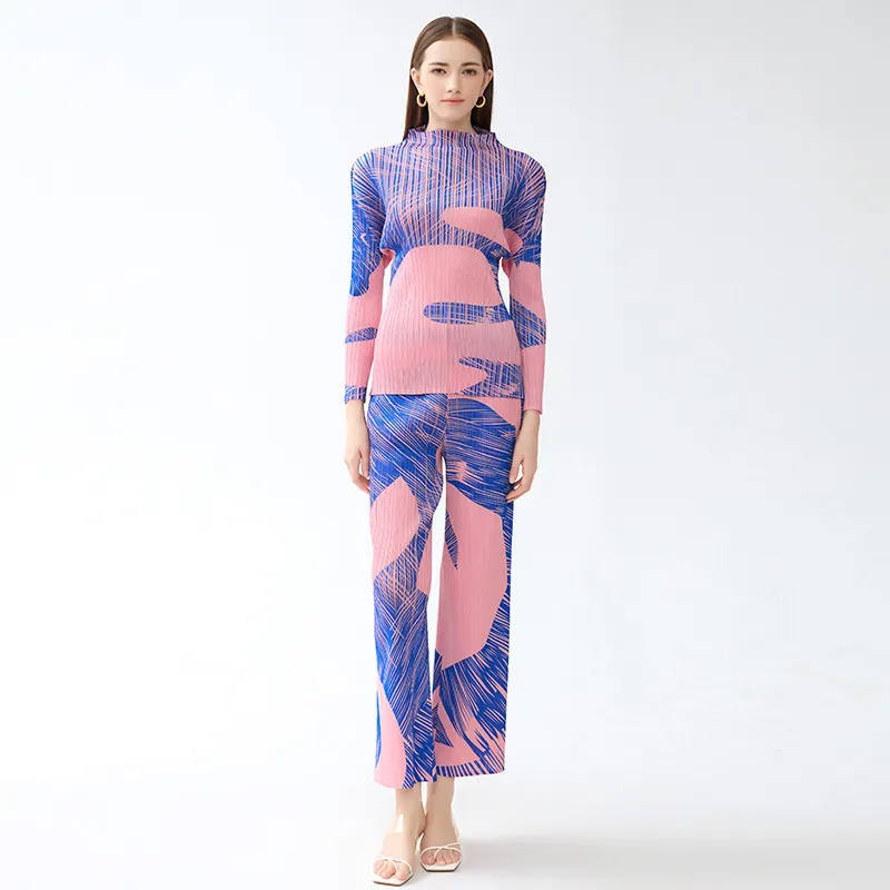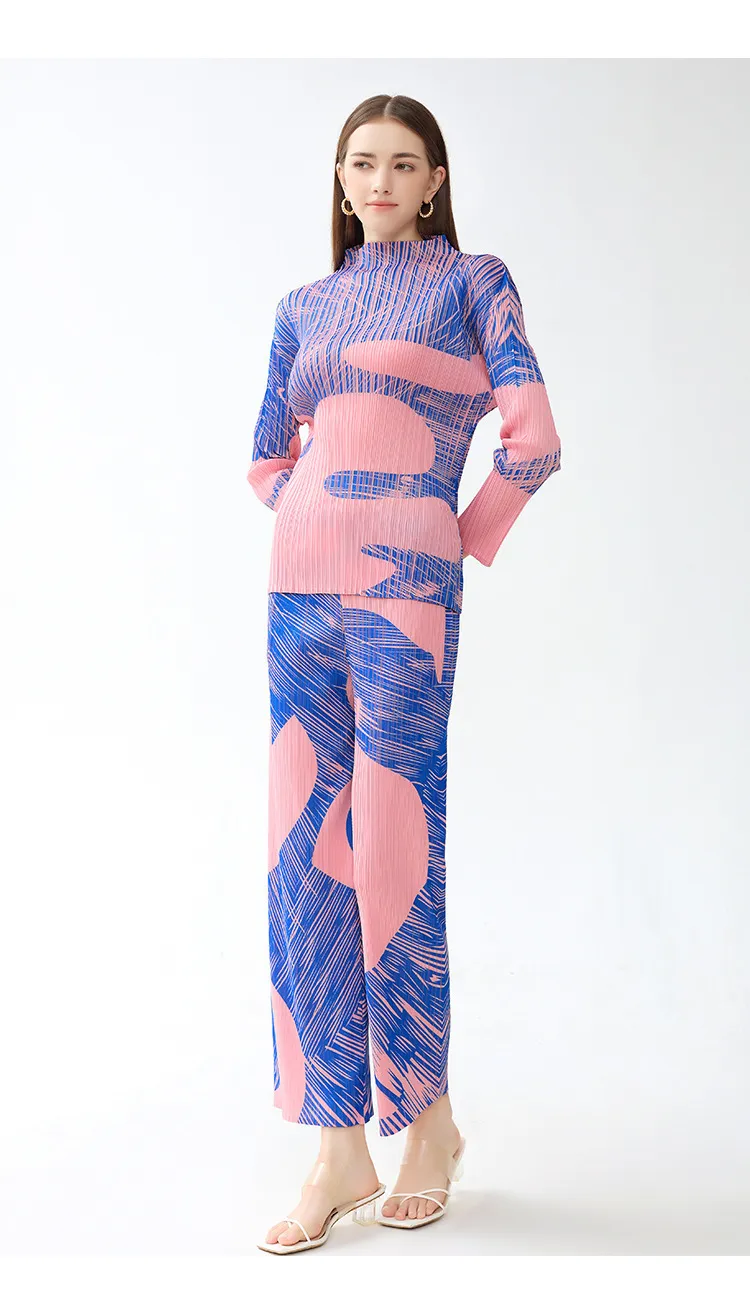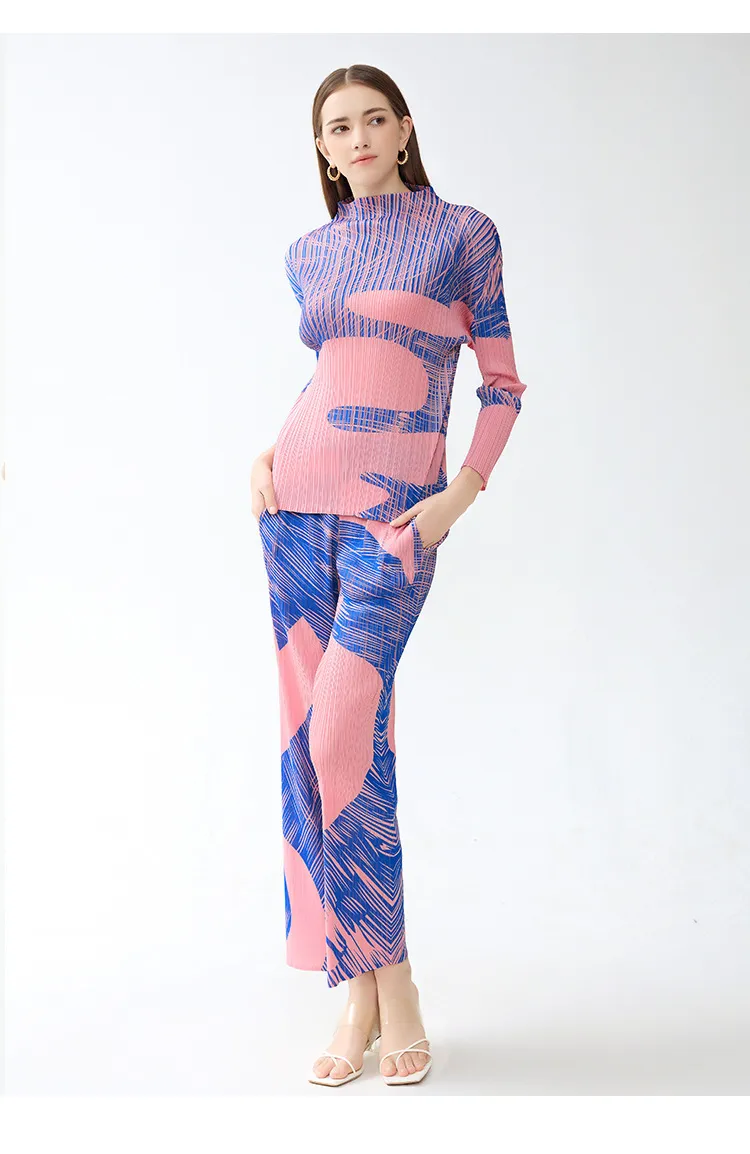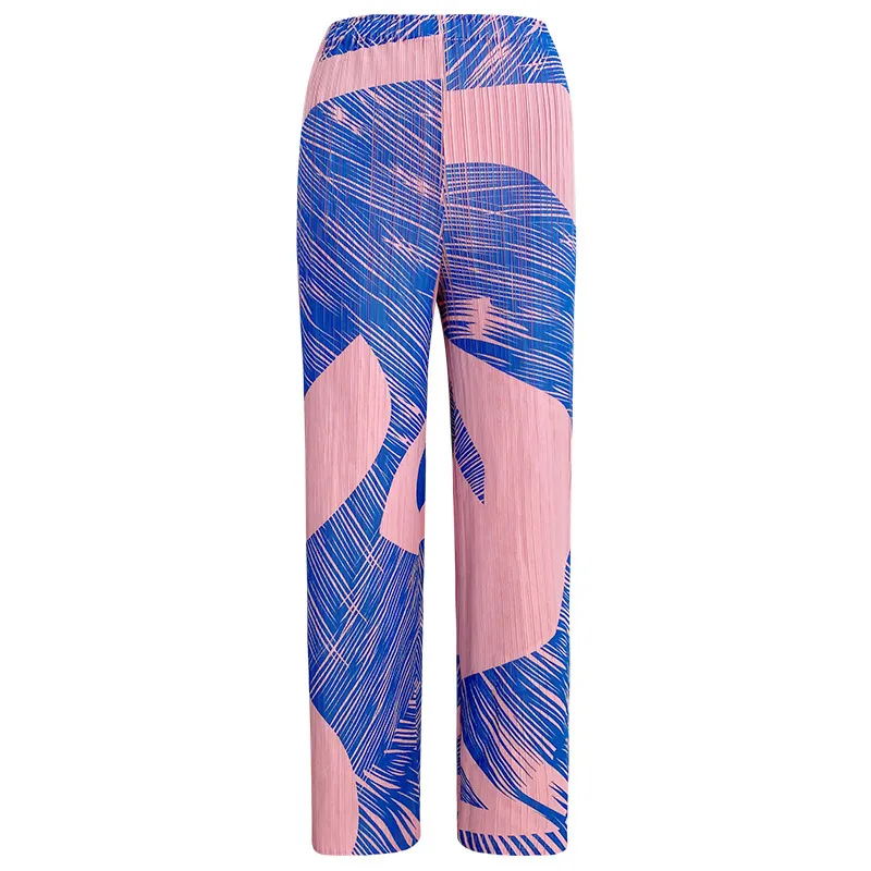 衣都精品- 新款時尚撞色印花休閒褶皺直筒褲