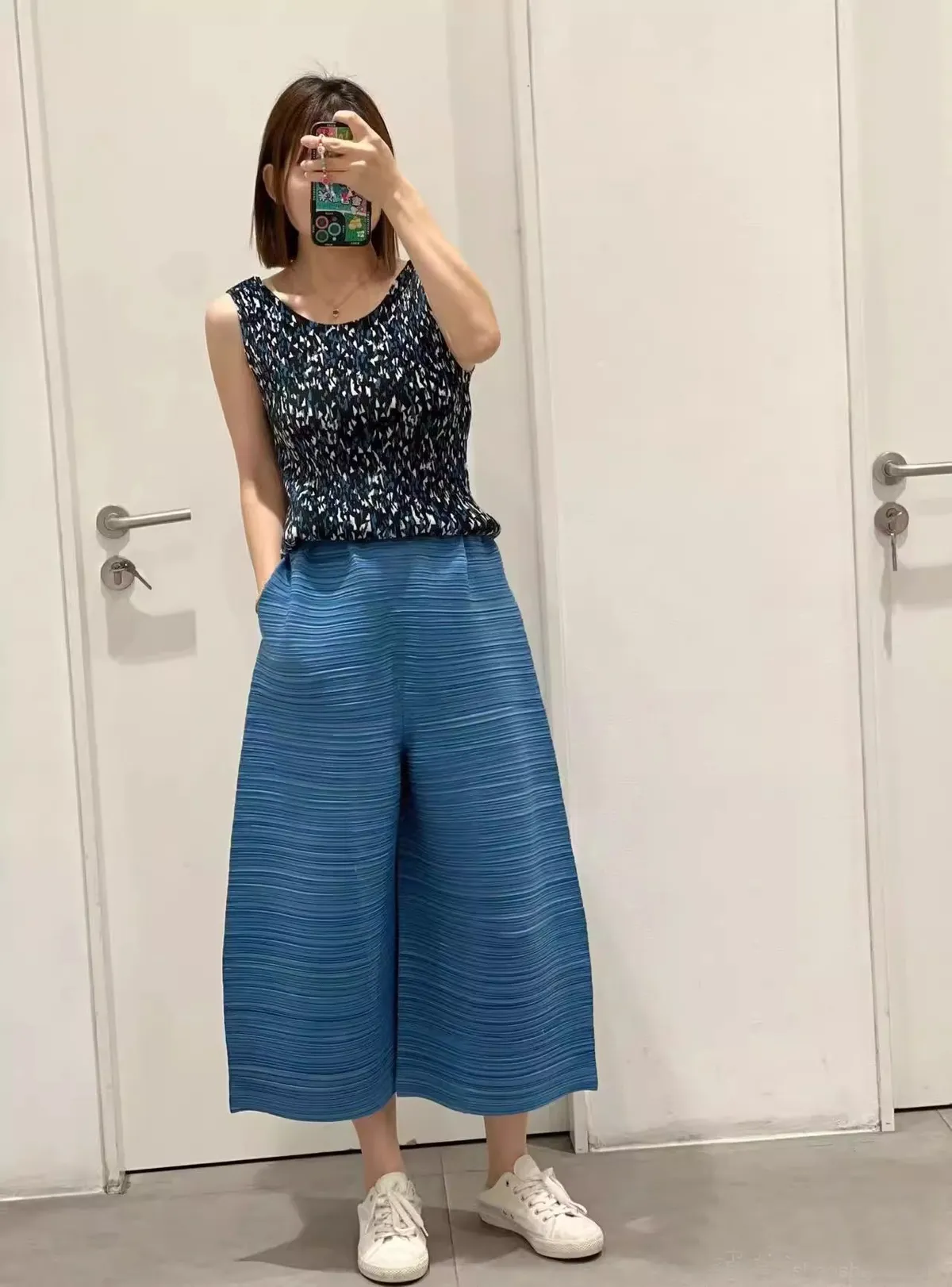 衣都精品- 新款氣質時尚顯瘦廓型無袖純色褶皺上衣