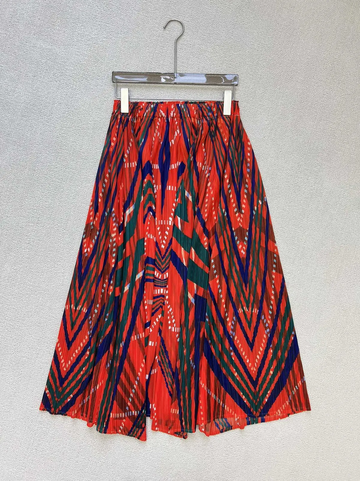 衣都精品- 新款高腰幾何線條花色印花寬鬆褶皺半身裙