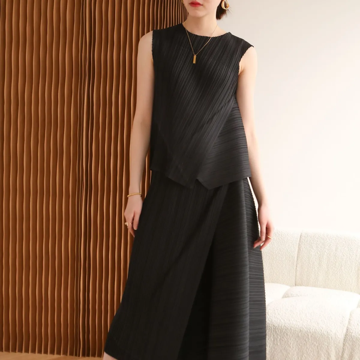 衣都精品- 新款時尚新潮無袖設計褶皺上衣