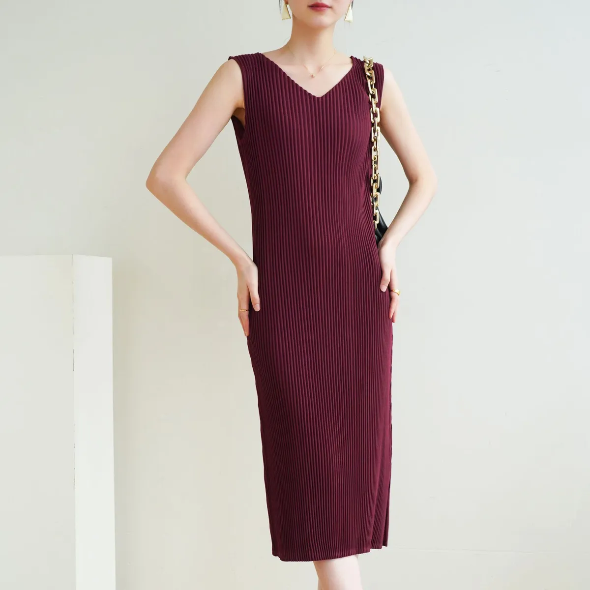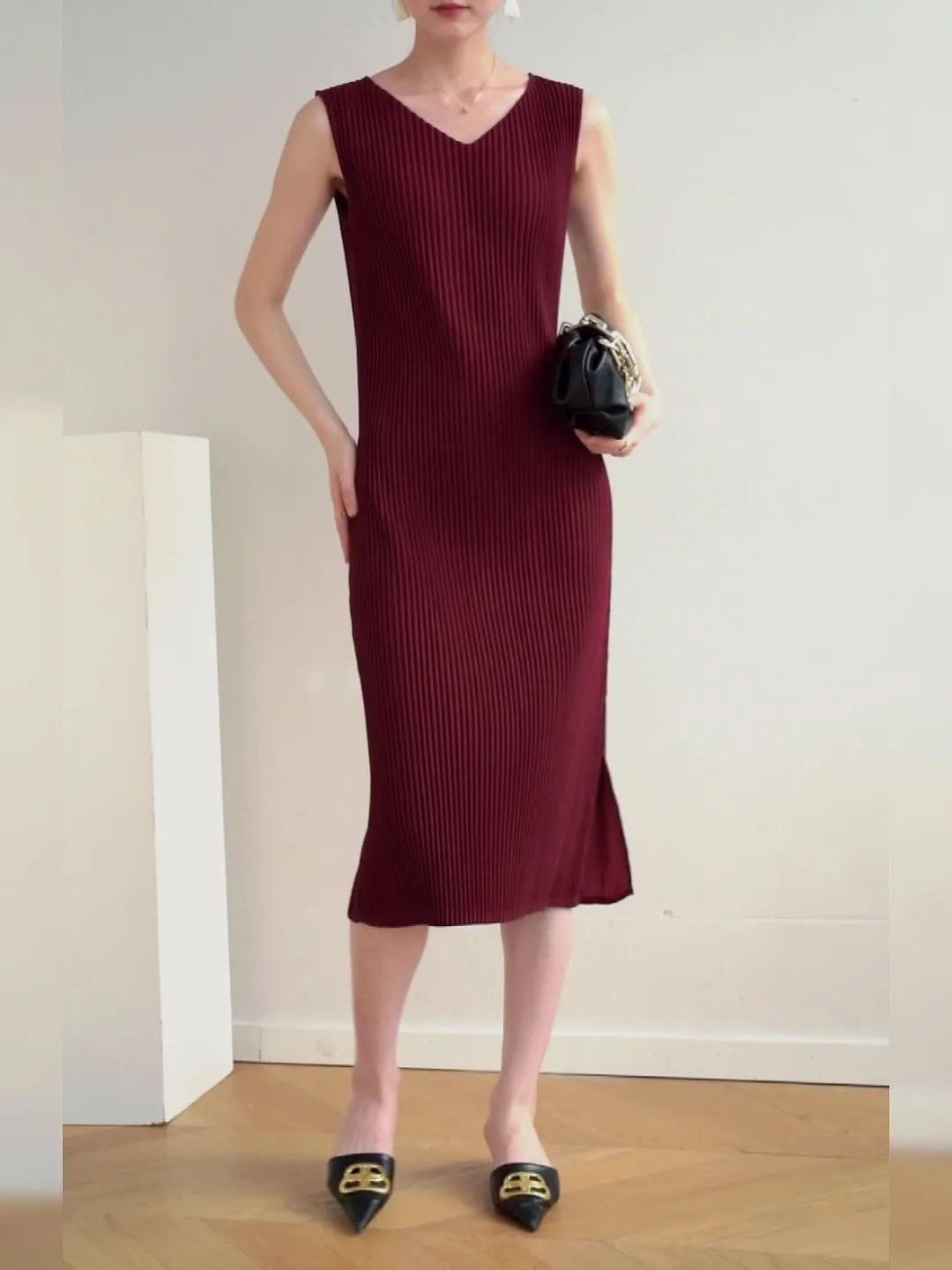 衣都精品- 新款氣質通勤簡約休閒顯瘦V領褶皺連衣裙