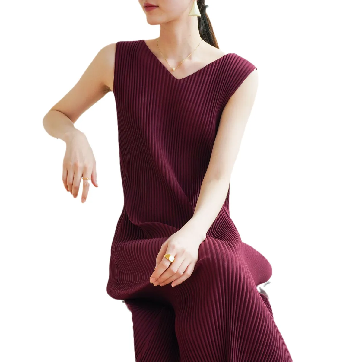 衣都精品- 新款圓領無袖寬鬆舒適圓點顯瘦褶皺連衣裙