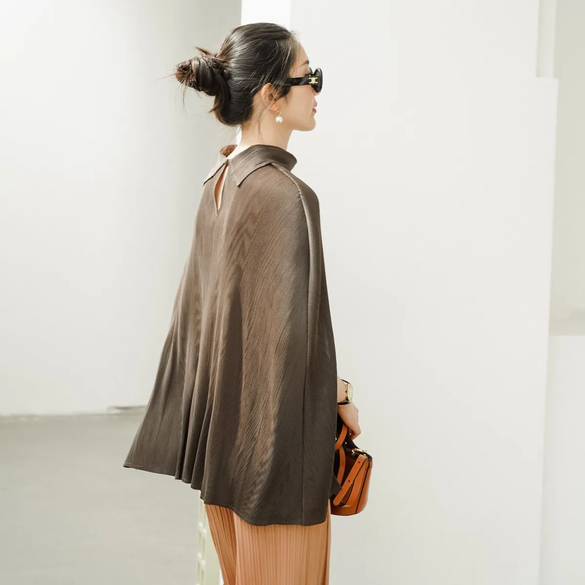 衣都精品- 新款小眾設計感清新甜美純色休閒褶皺上衣