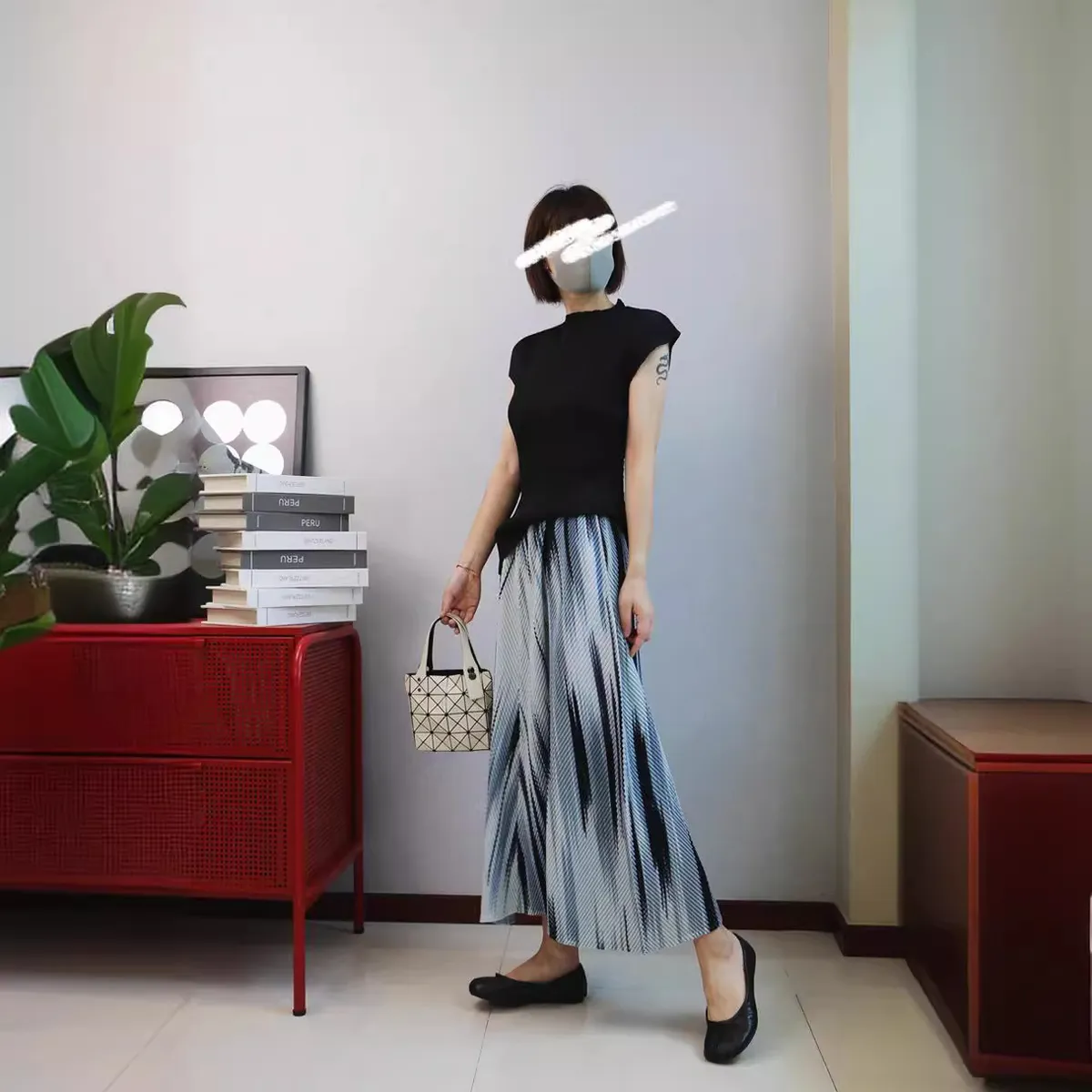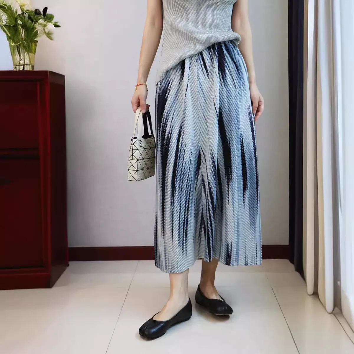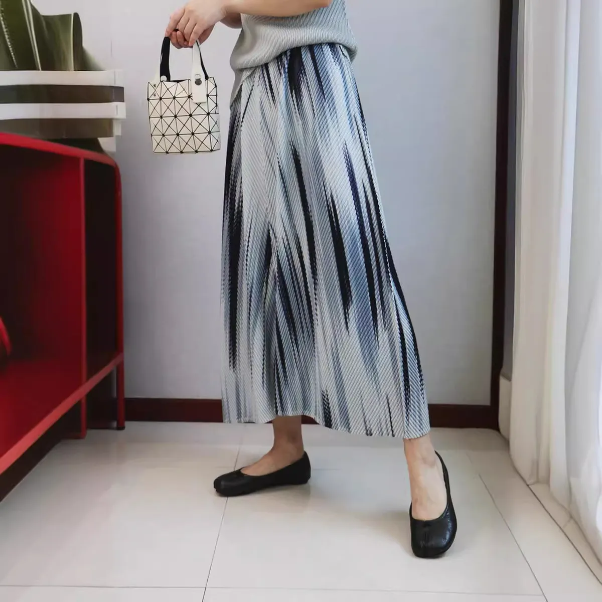衣都精品- 新款波光粼粼霧色暈染魚鱗肌理褶皺半身裙