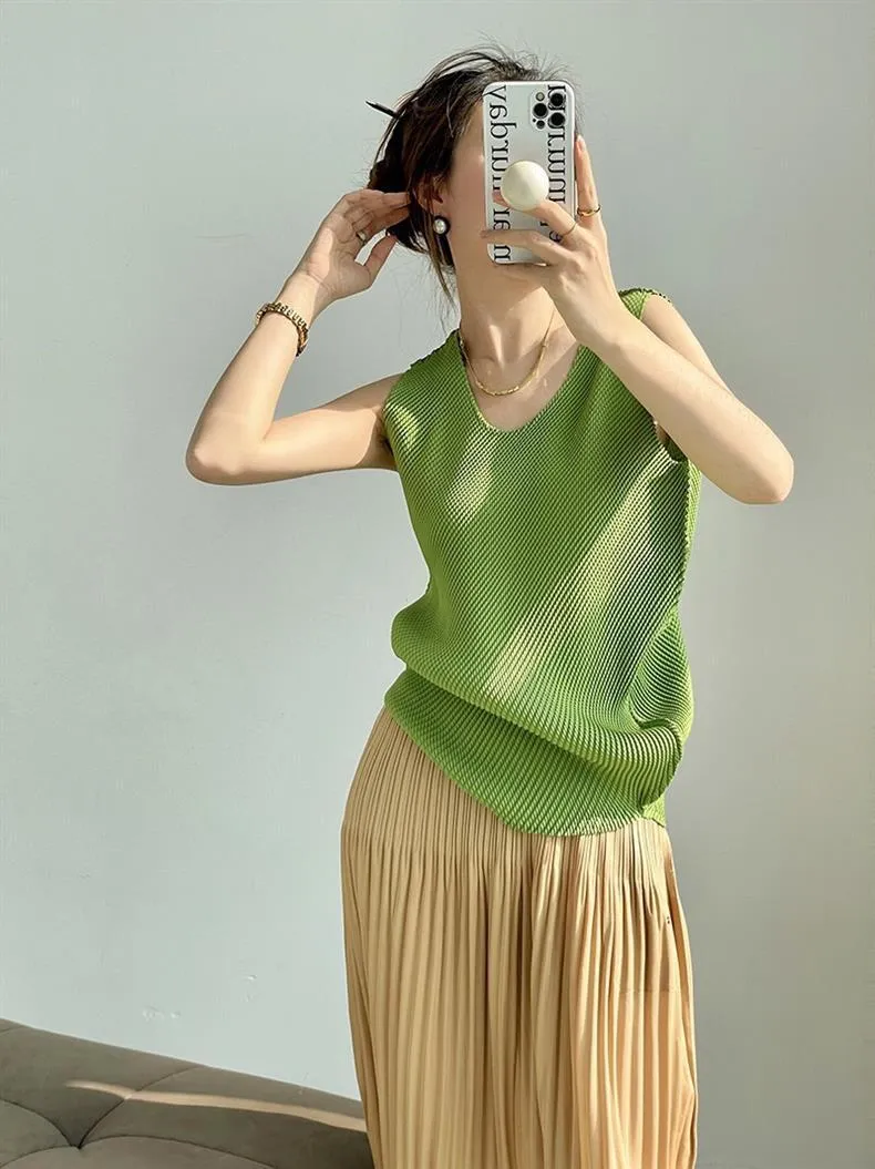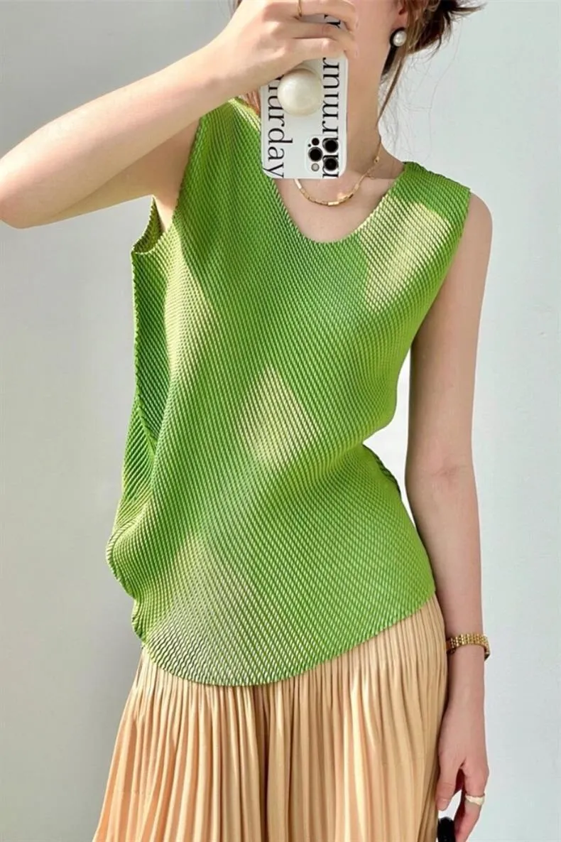 衣都精品- 新款超彈顯瘦百搭魚鱗款褶皺背心上衣