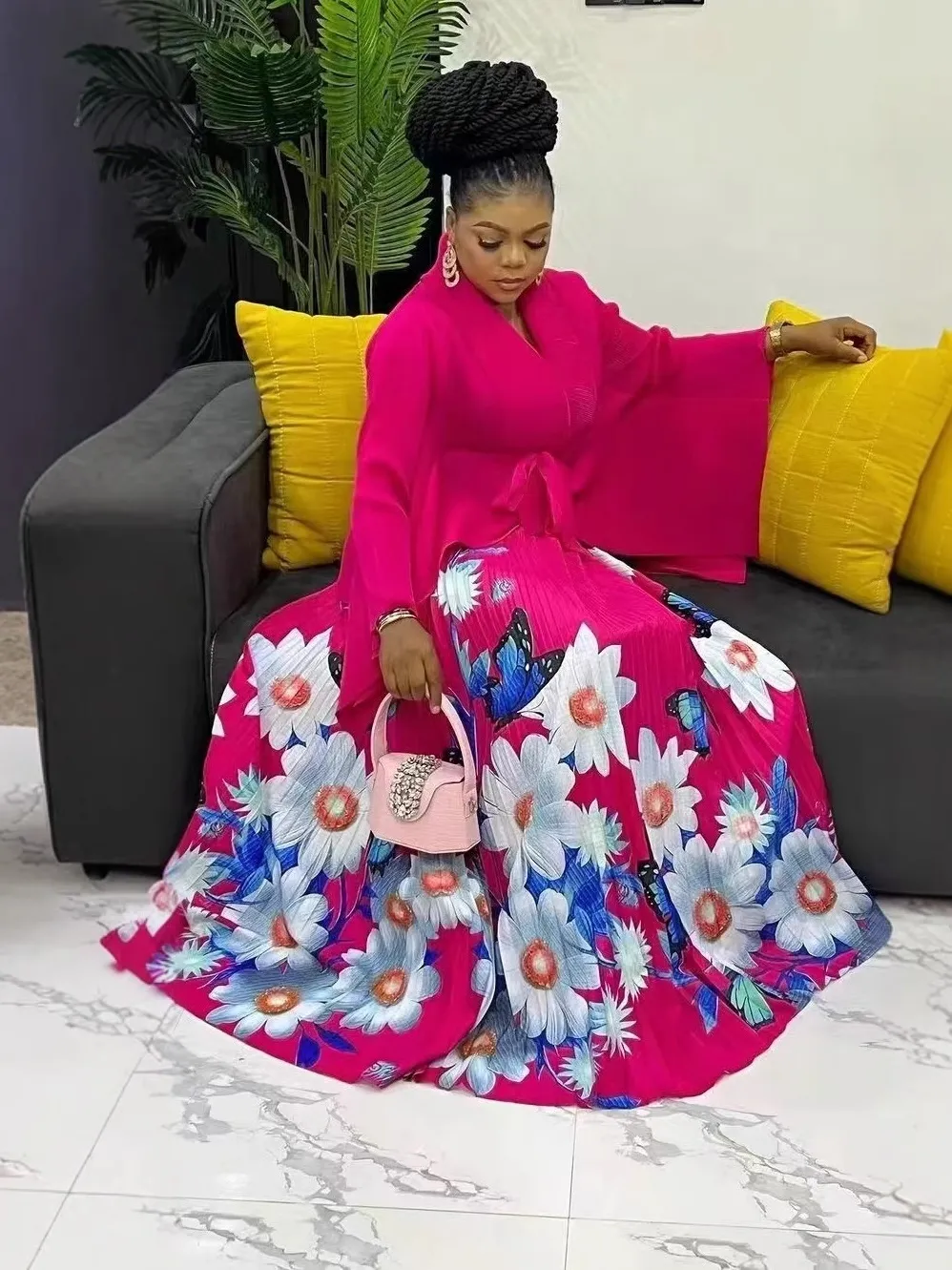 衣都精品- 新款爆款繫帶純色外披+長款大擺半身裙兩件式套裝