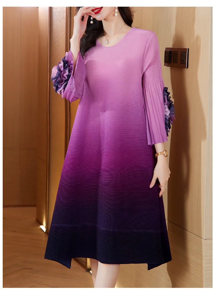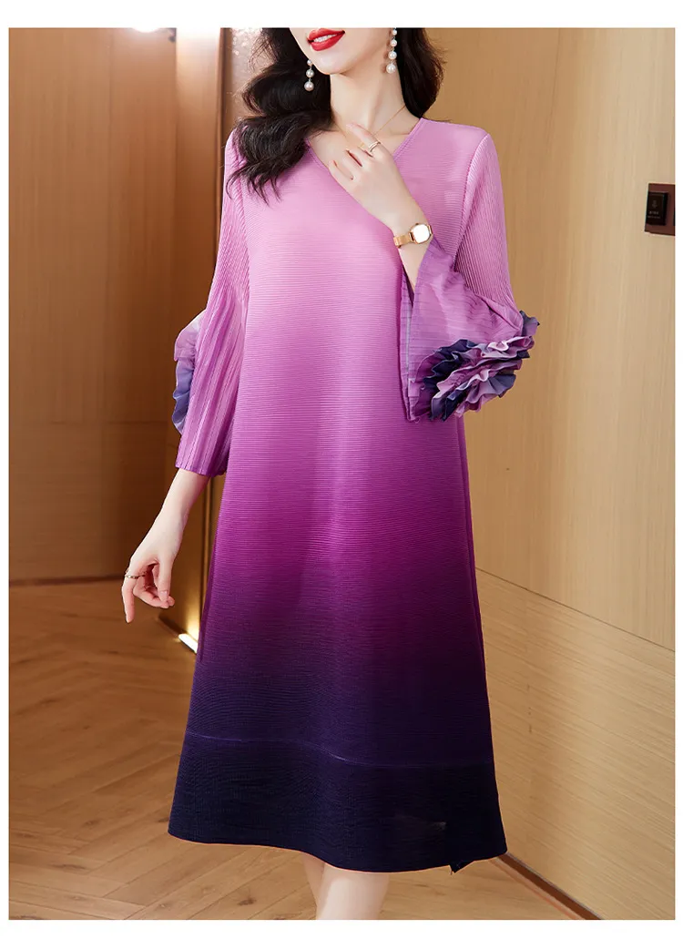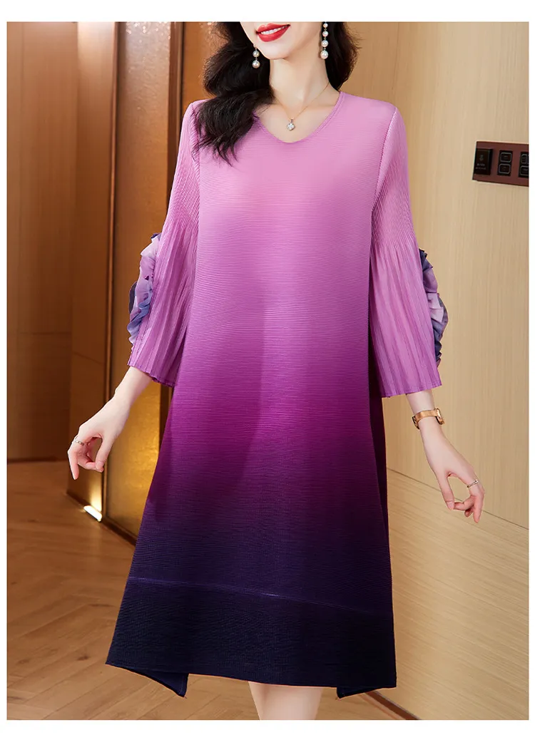 衣都精品- 新款時尚大碼印花遮肚顯瘦褶皺連衣裙