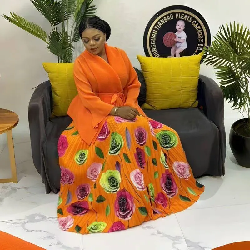 衣都精品- 新款時尚蝙蝠袖斗篷外套+印花半身裙褶皺套裝