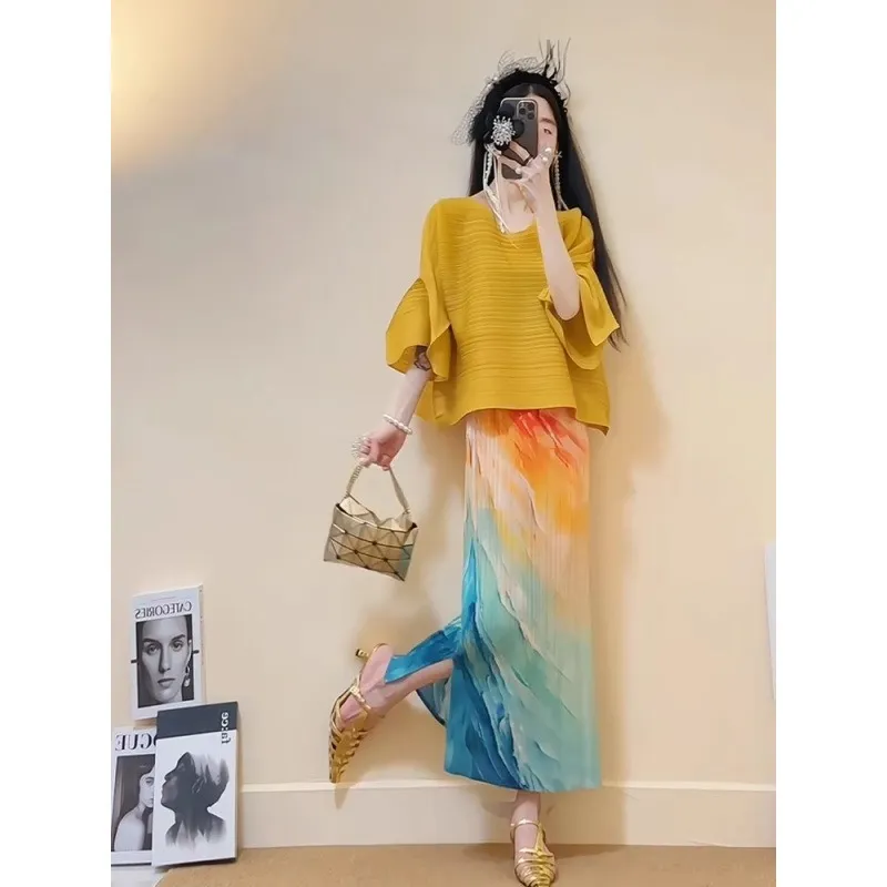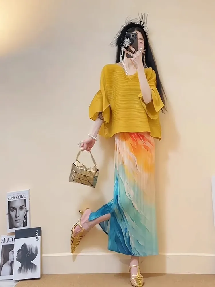 衣都精品- 新款高端寬鬆喇叭袖褶皺上衣