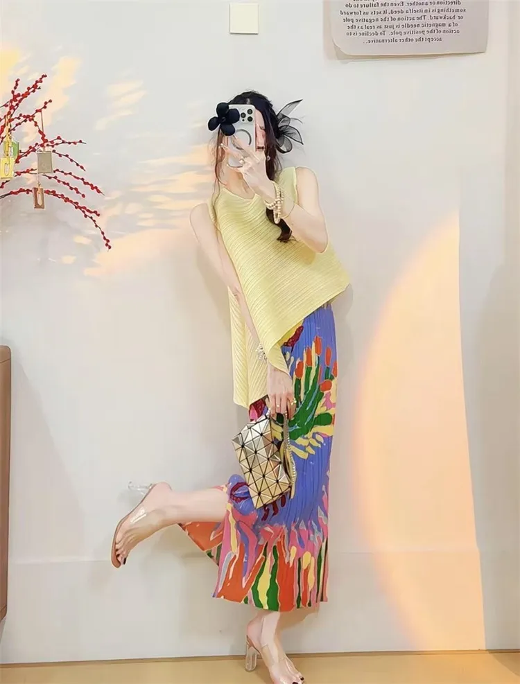 衣都精品- 新款復古開叉減齡絢麗煙花半身裙