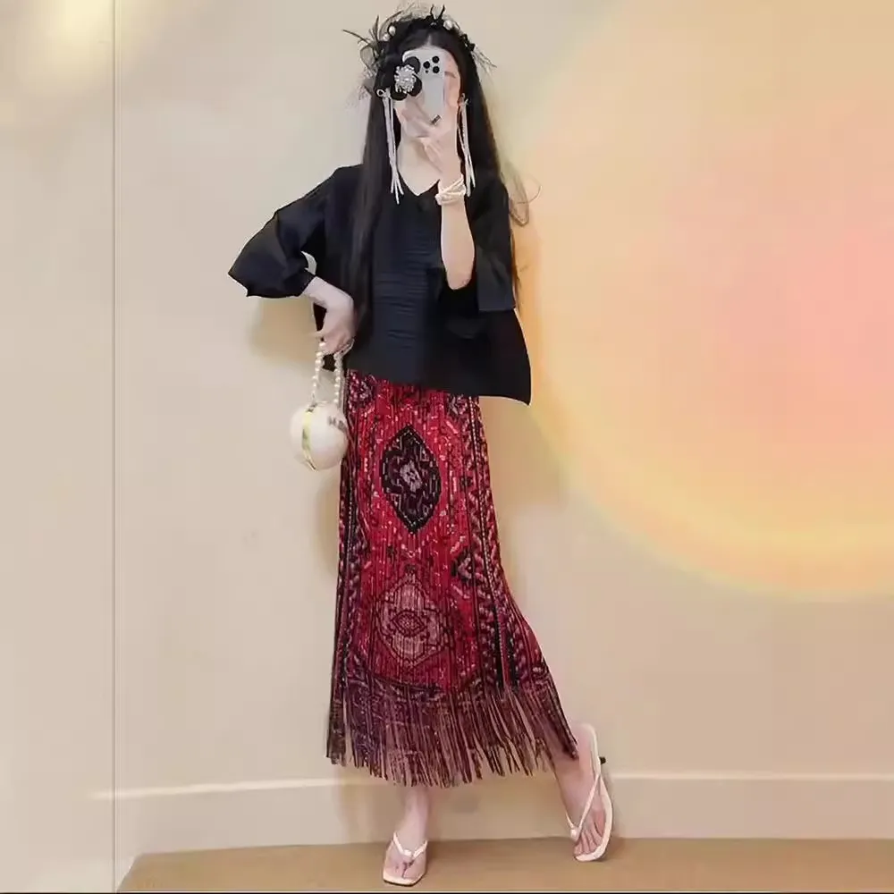 衣都精品- 新款時尚氣質油畫風褶皺半身裙