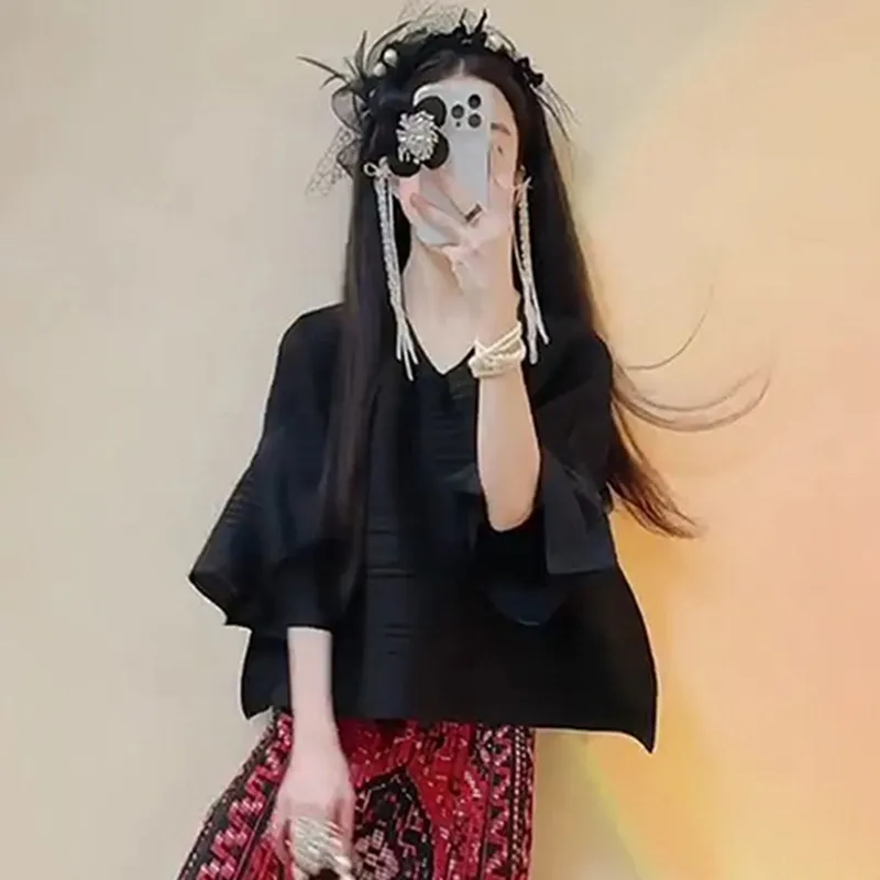 衣都精品- 新款時尚氣質不規則寬鬆褶皺上衣