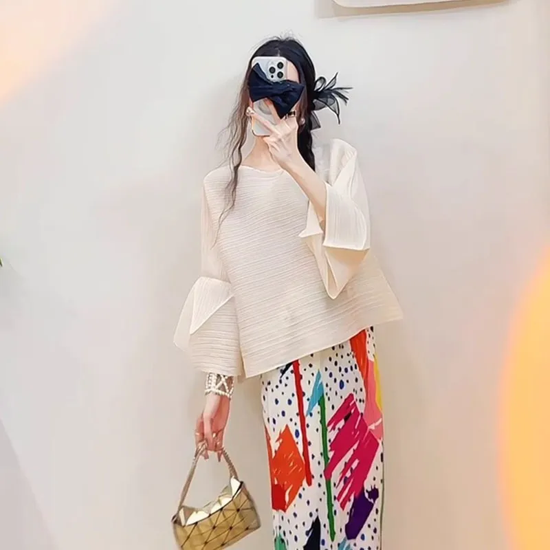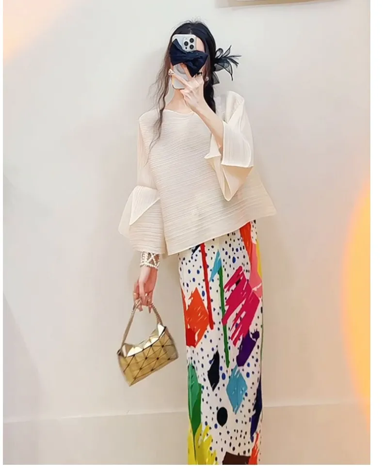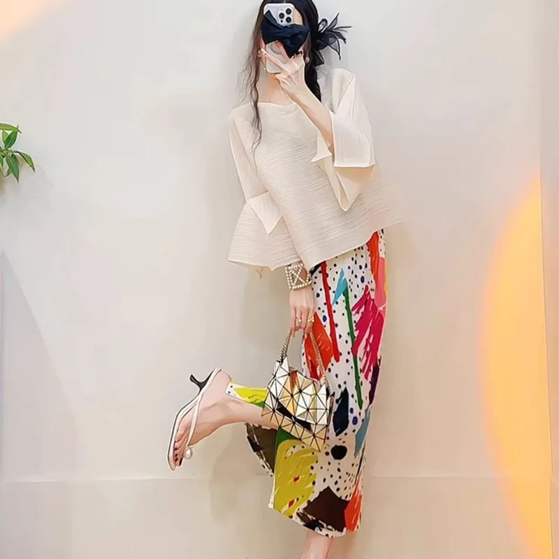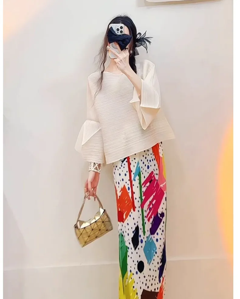 衣都精品- 新款氣質時尚印花褶皺半身裙