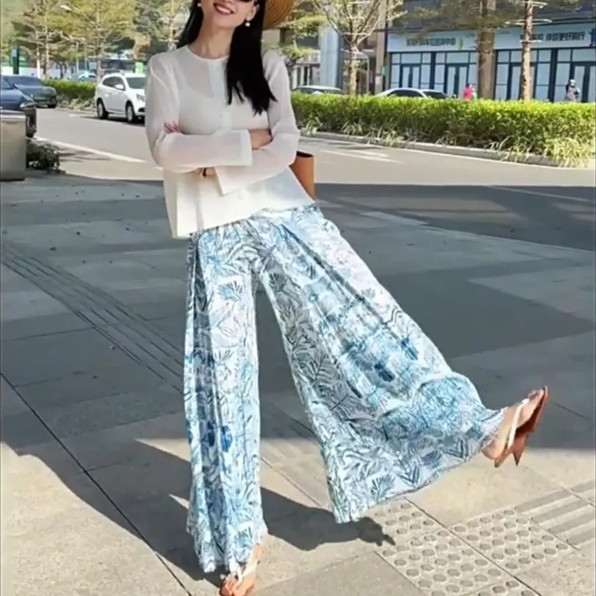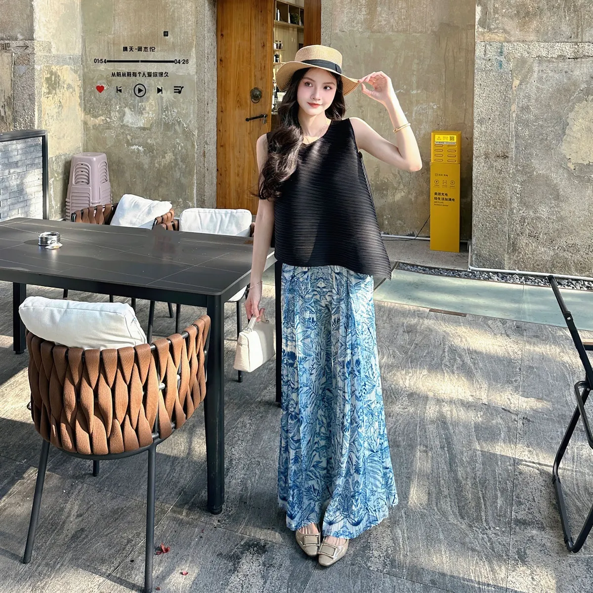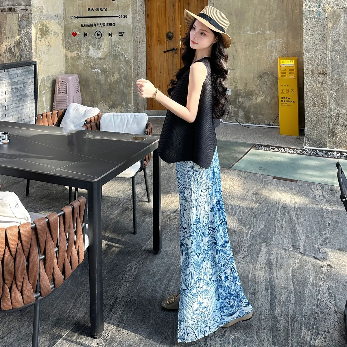 衣都精品- 新款簡約寬鬆印花褶皺半身裙